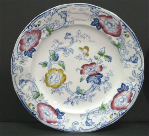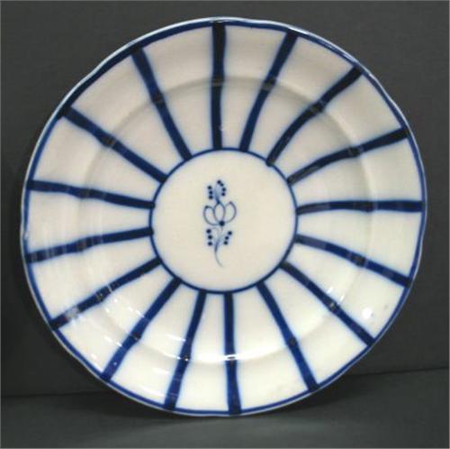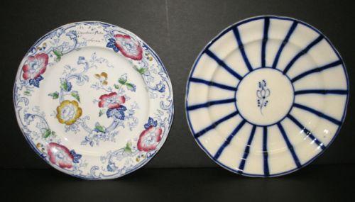 LOT OF TWO PORCELIAN PLATES. Consists of one Ironstone Francis Morley (1845-1858) plate in the California pattern. Marked on reverse. Shows signs of crazing. 9.25” Dia. Also consists of one cobalt decorated plate. Unmarked. Shows signs of crazing. 9.5” Dia.