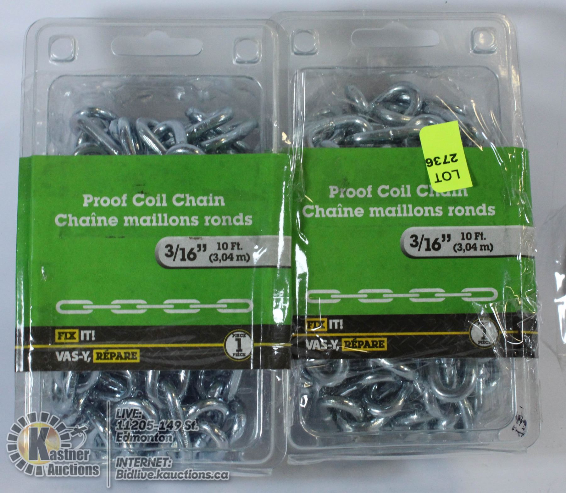 LOT OF TWO PROOF COIL CHAIN: 3/16  (10FT) PER BOX