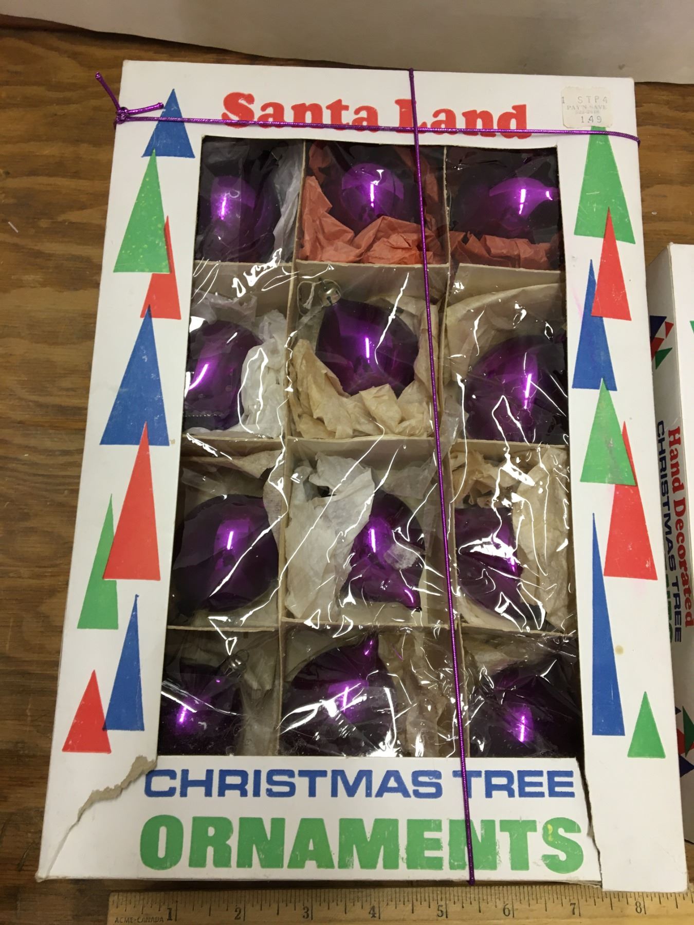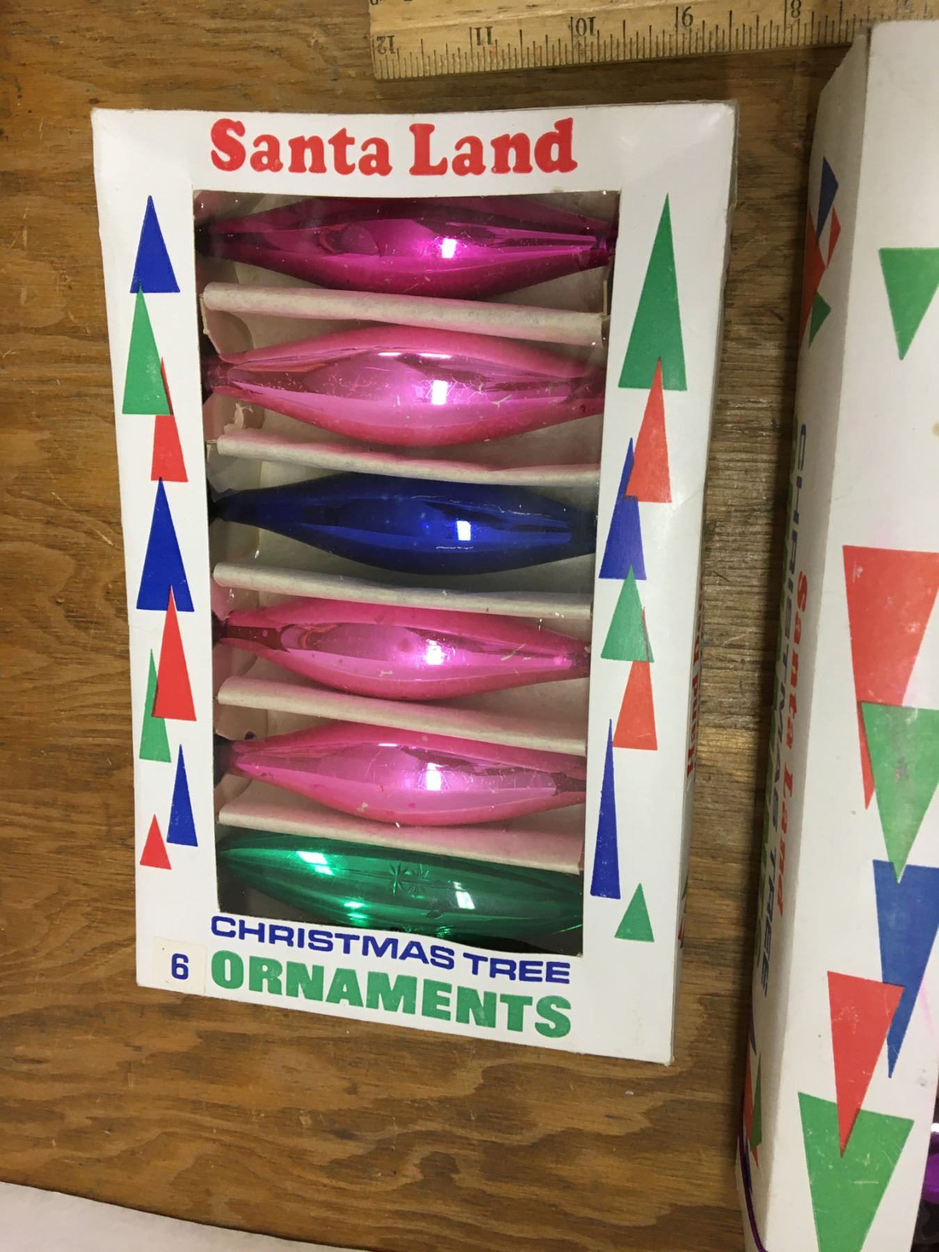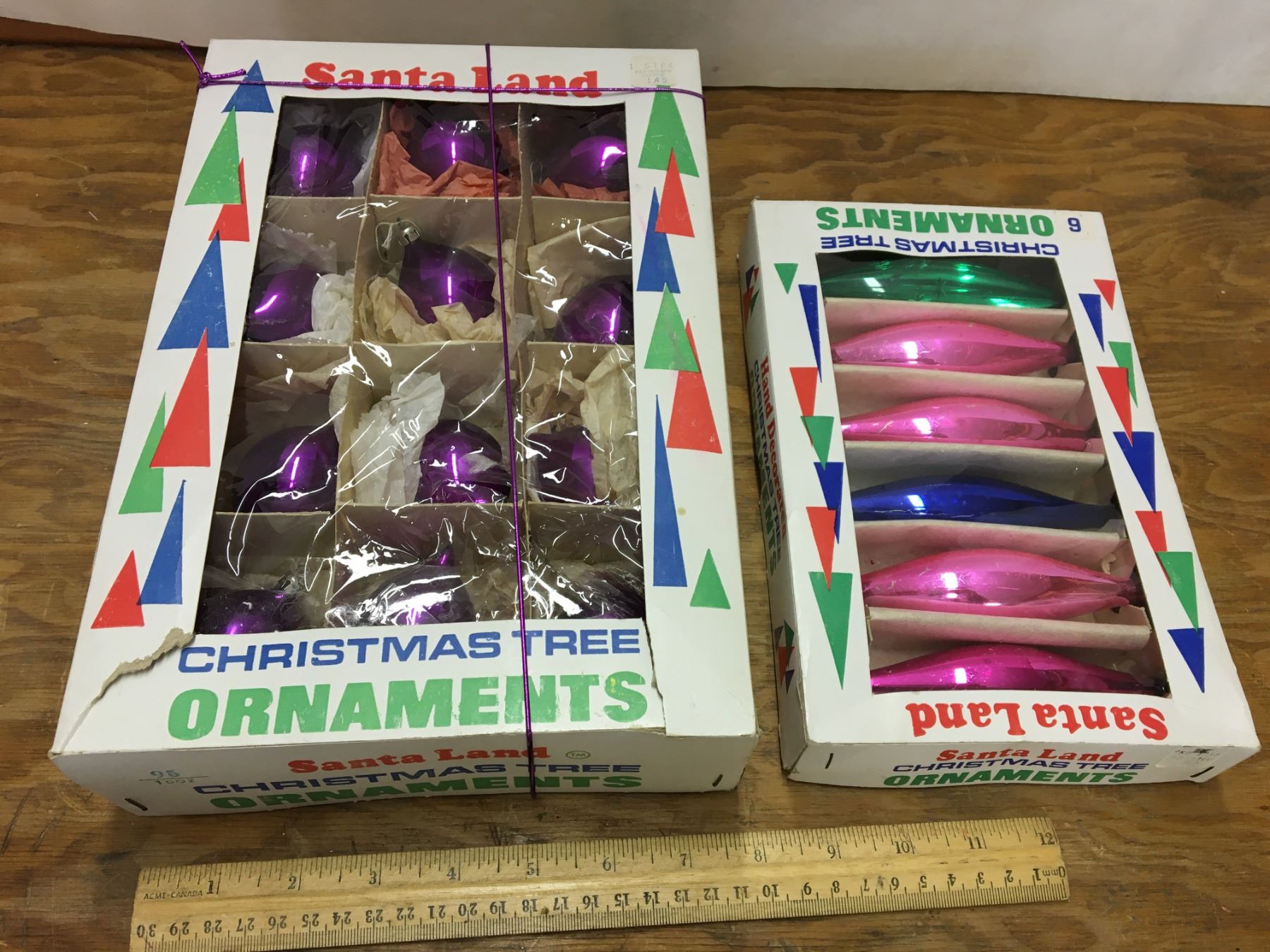 LOT OF TWO VINTAGE BOXES OF SANTA LAND CHRISTMAS ORNAMENTS