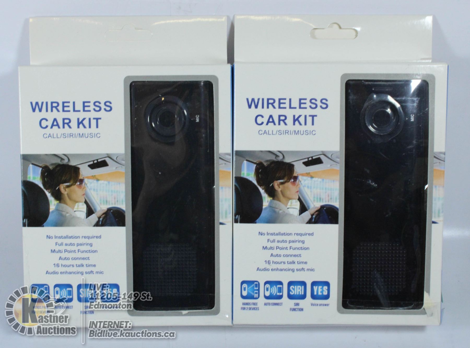 LOT OF TWO WIRELESS CAR KITS. MAKE CALLS, USE SIRI