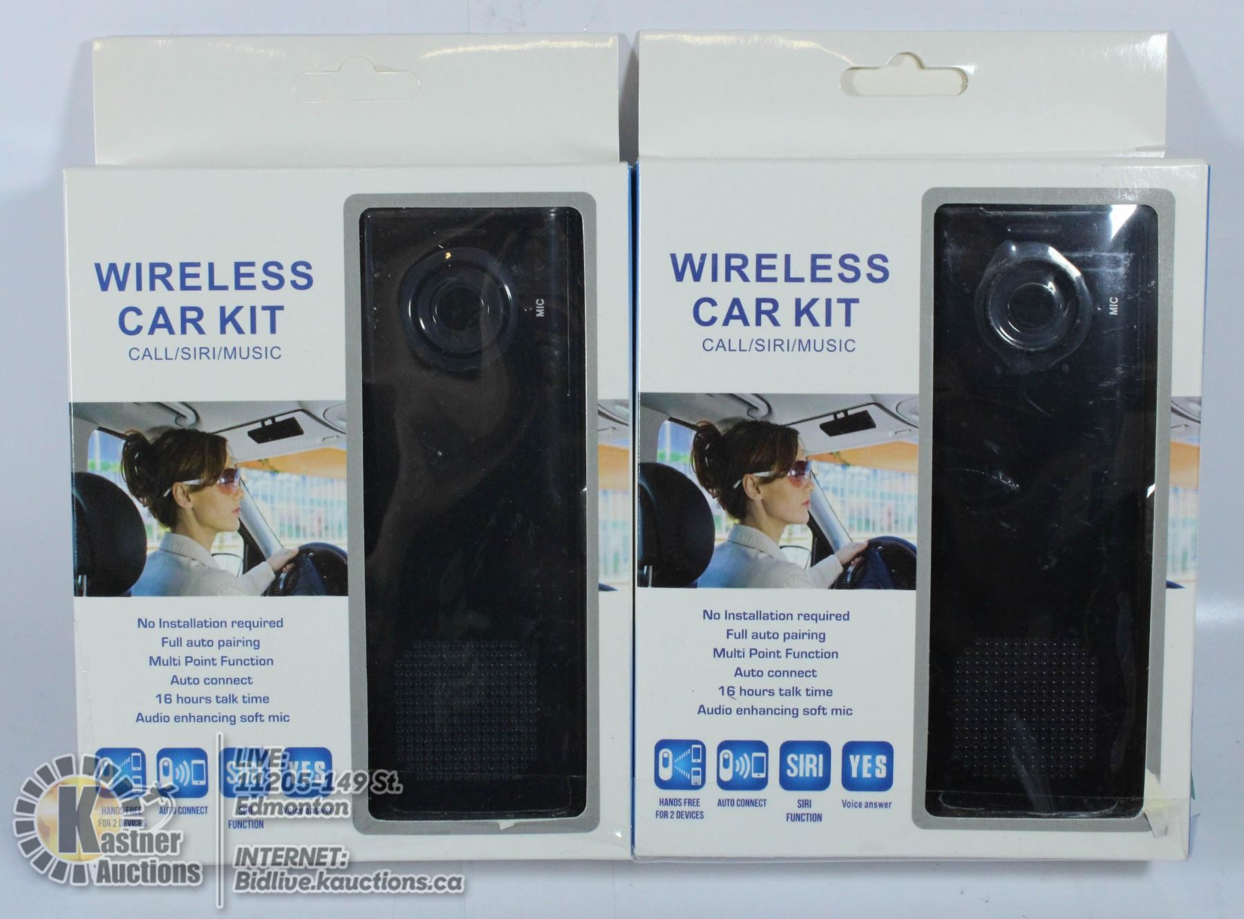 LOT OF TWO WIRELESS CAR KITS. MAKE CALLS, USE SIRI