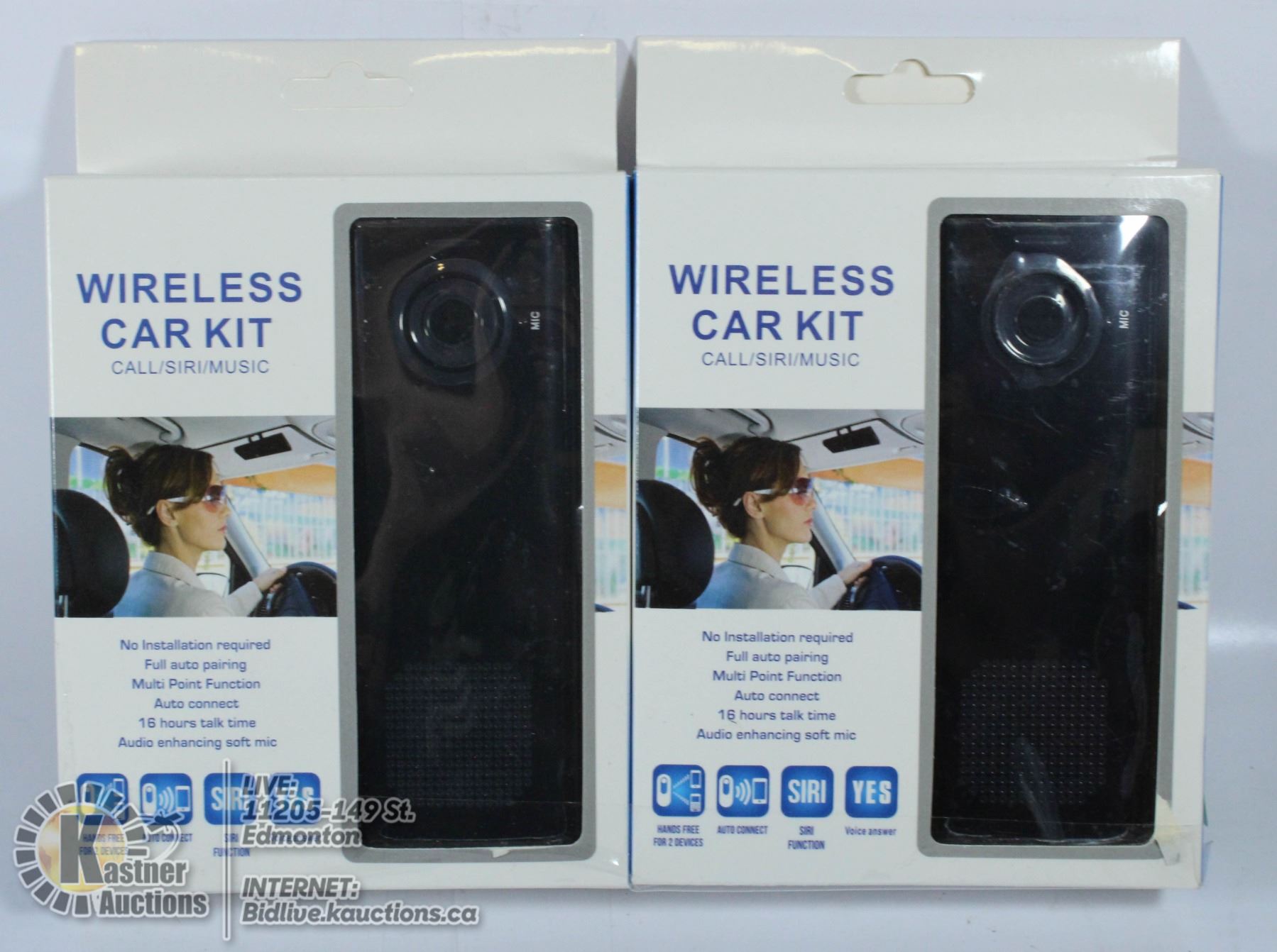 LOT OF TWO WIRELESS CAR KITS. MAKE CALLS, USE SIRI