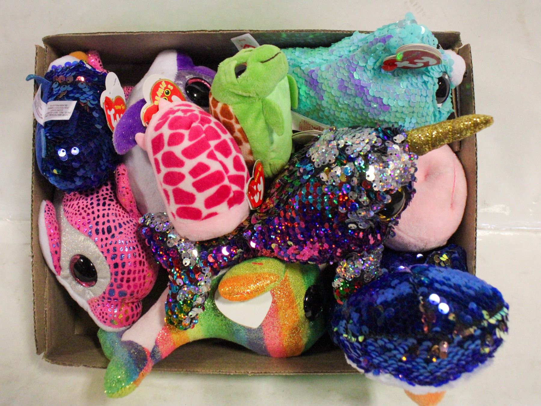 7 SMALL - PINK SHINY DOLPHIN (SPARKLES), BLUE SEQUINED FLIPPABLE PENGUIN (PEYTON), TEAL SEQUINED FLIPPABLE SEAL (WAVES), PURPLE DOLPHIN (FLIPS), RAINBOW SHINY NARWHAL (NORI), PINK SEA TURTLE (SHELLBY), RAINBOW SEQUINED FLIPPABLE NARWHAL (CALYPSO). AL