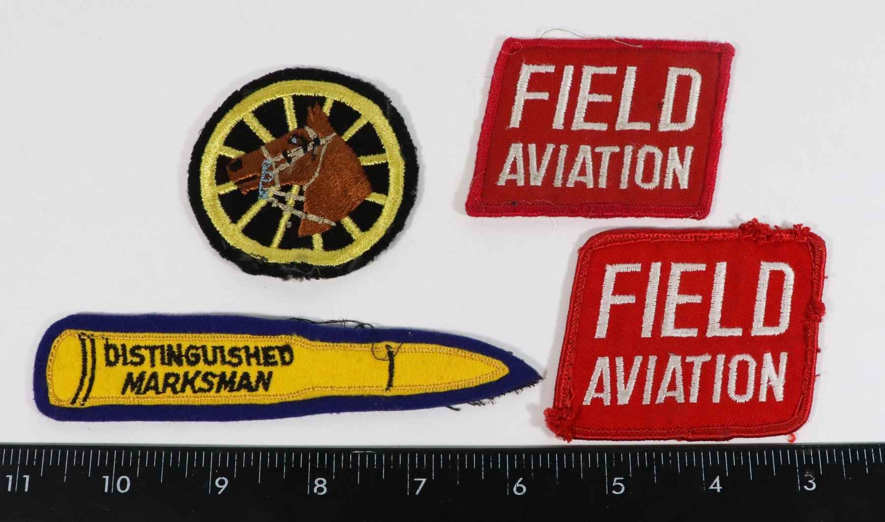 TRAFFIC DIVISION PATCH, DISTINGUISHED MARKSMAN BULLET CLOTH PATCH AND PAIR FIELD AVIATION CLOTH PATCHES AIR FORCE