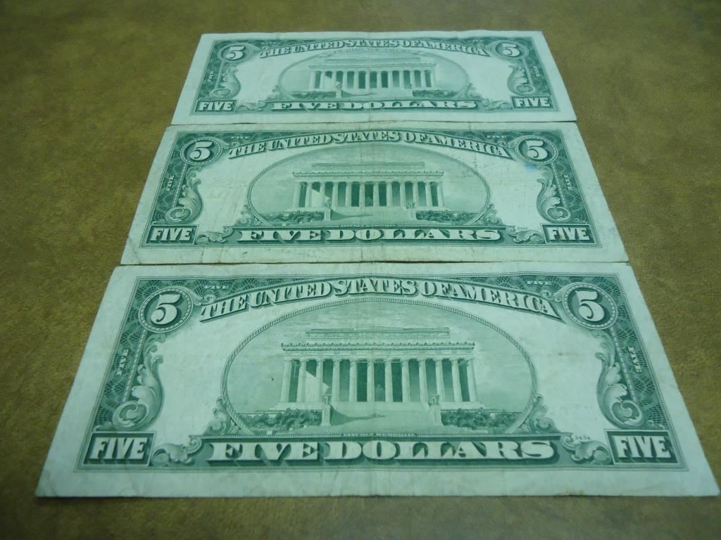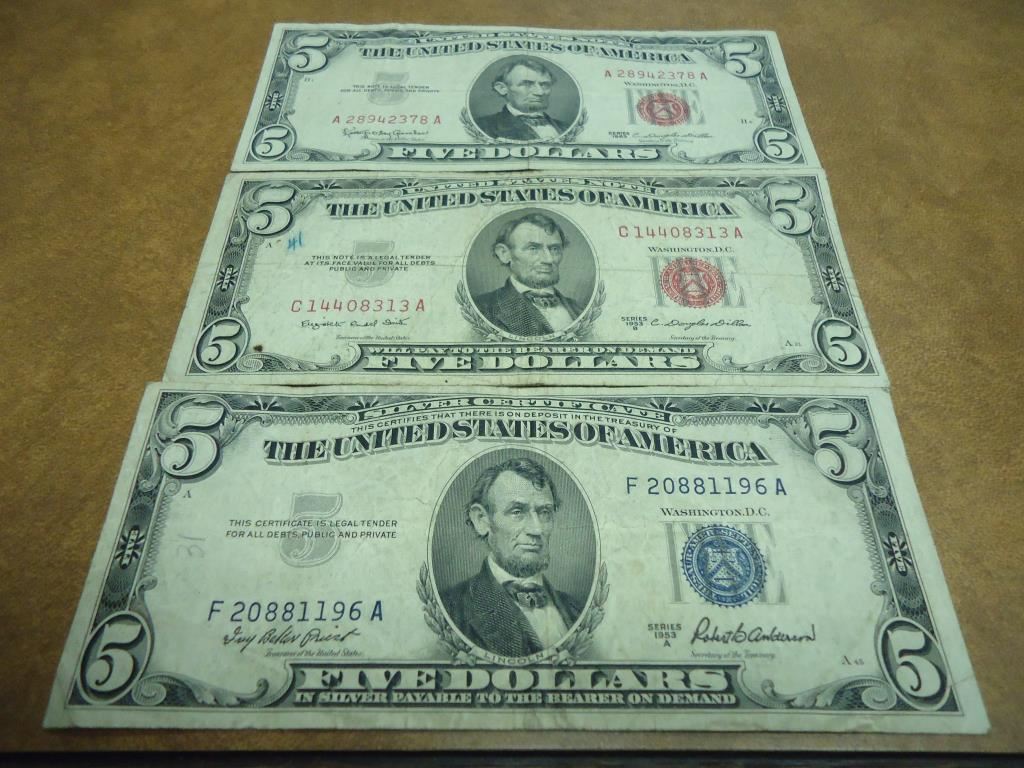 1953-A SILVER CERTIFICATE BLUE SEAL, 1953-B US NOTE RED SEAL AND 1963 US NOTE RED SEAL