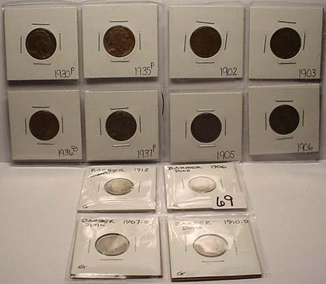 LOT OF US COINS - Incl. 4 Buffalo Nickels, 4 Liberty / V Nickels, 4 Barber Dimes