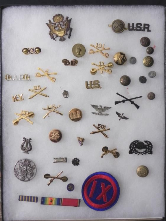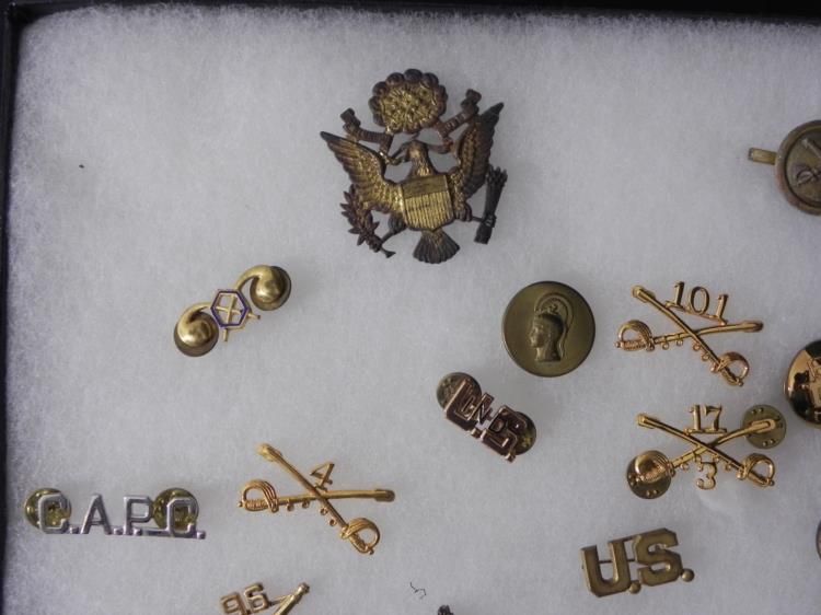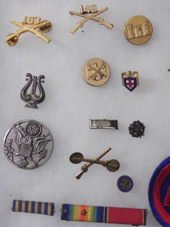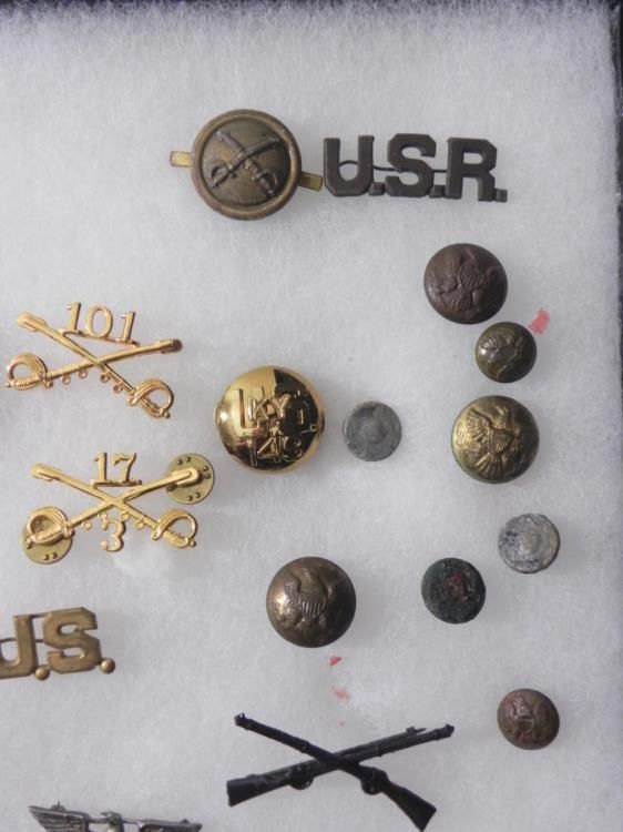 LOT OF US MILITARY INSIGNIA, PATCHES ETC-IN RIKER MOUNT