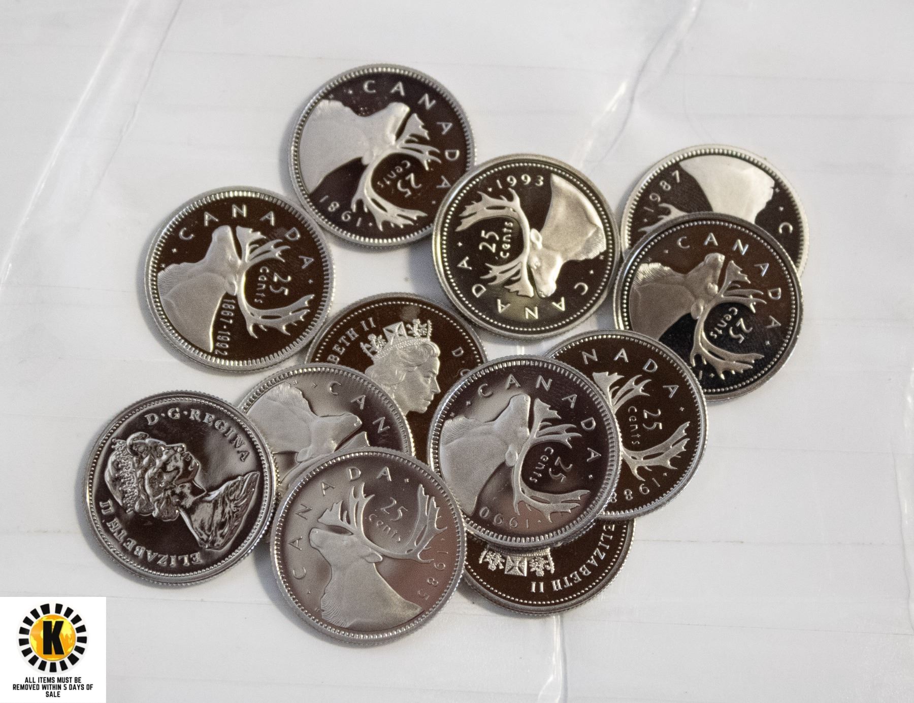 LOT OF VARIOUS CANADIAN 25 CENT COINS