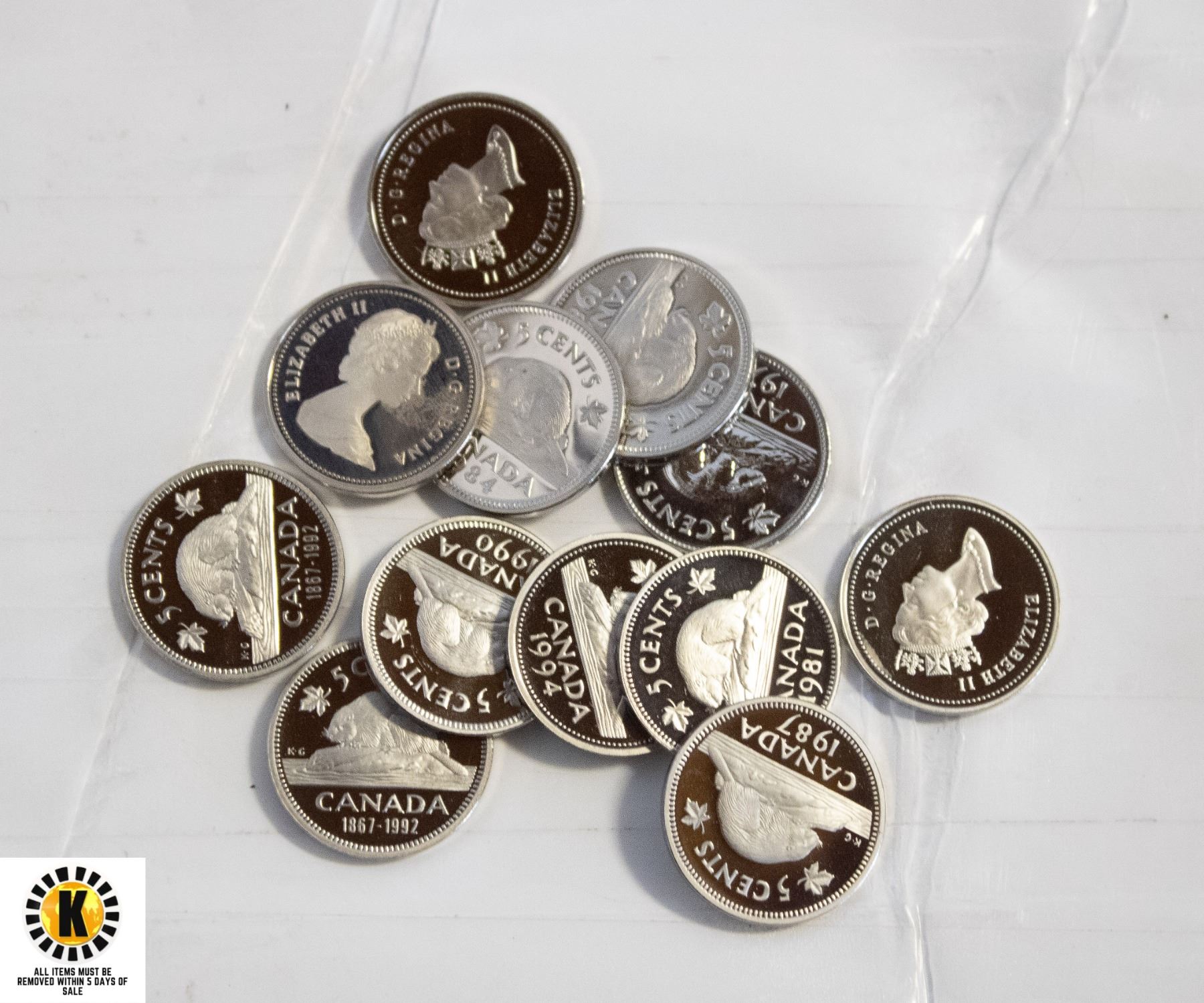 LOT OF VARIOUS CANADIAN 5 CENTS COINS