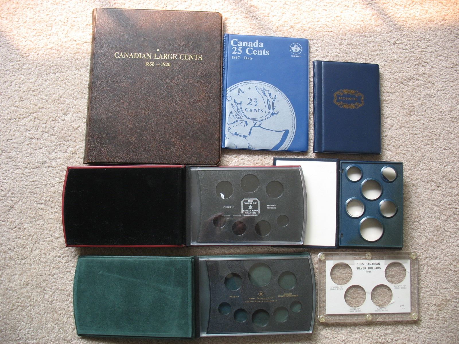 LOT OF VARIOUS COIN ALBUMS & COIN DISPLAY CASES