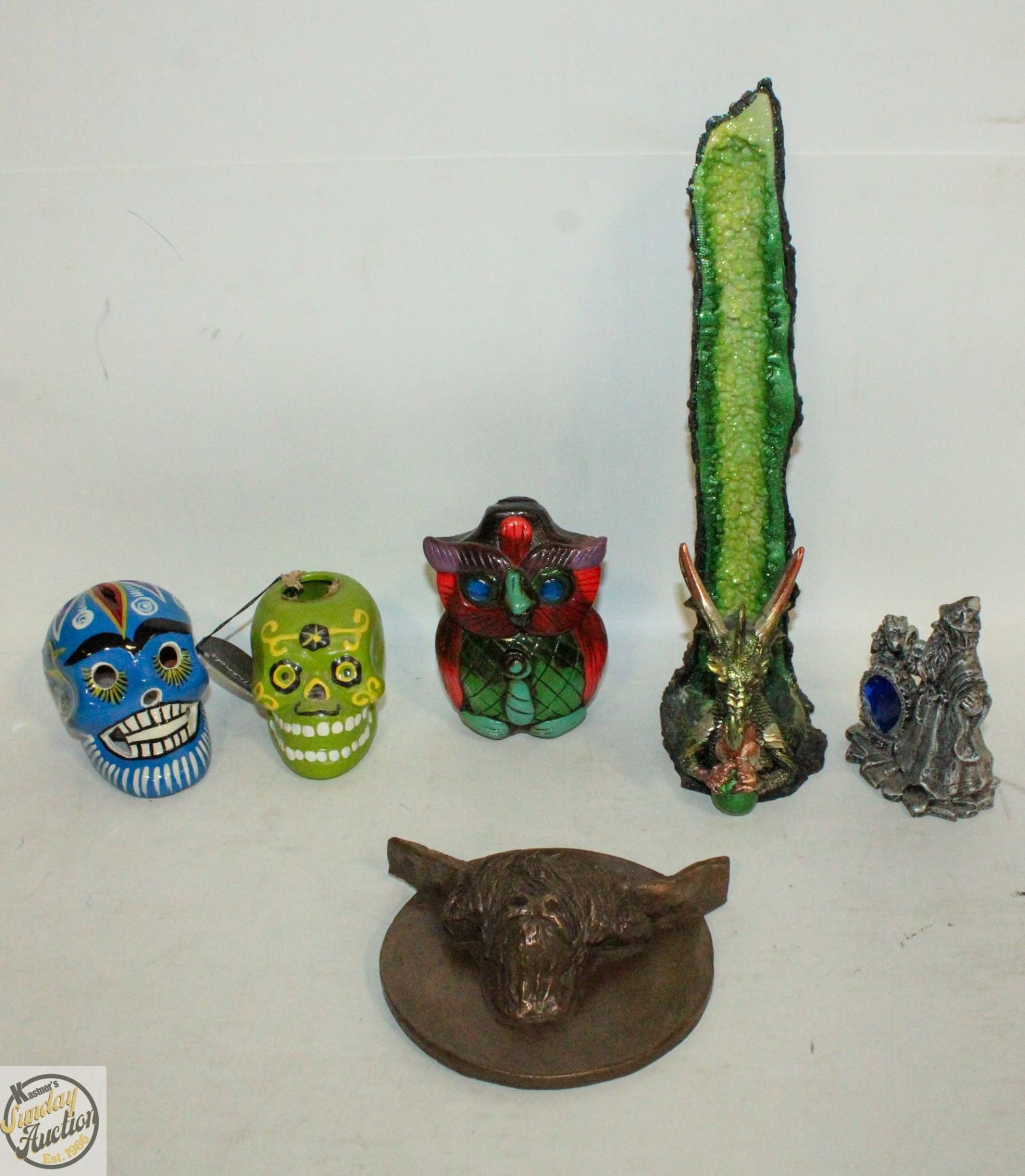 LOT OF VARIOUS DECOR INCLUDES OWL WHISTLE