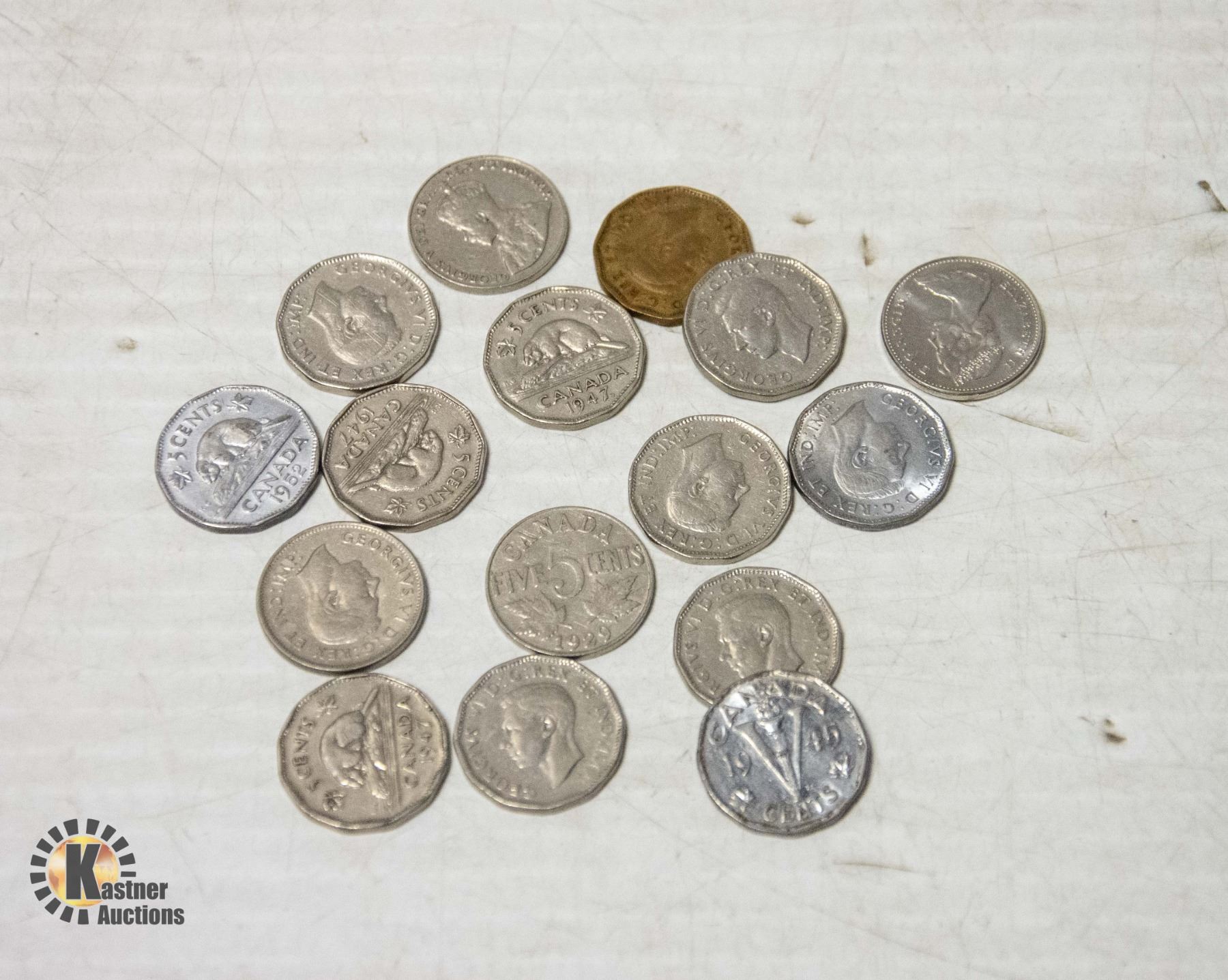 LOT OF VARIOUS OLD CANADA 5 CENTS COINS