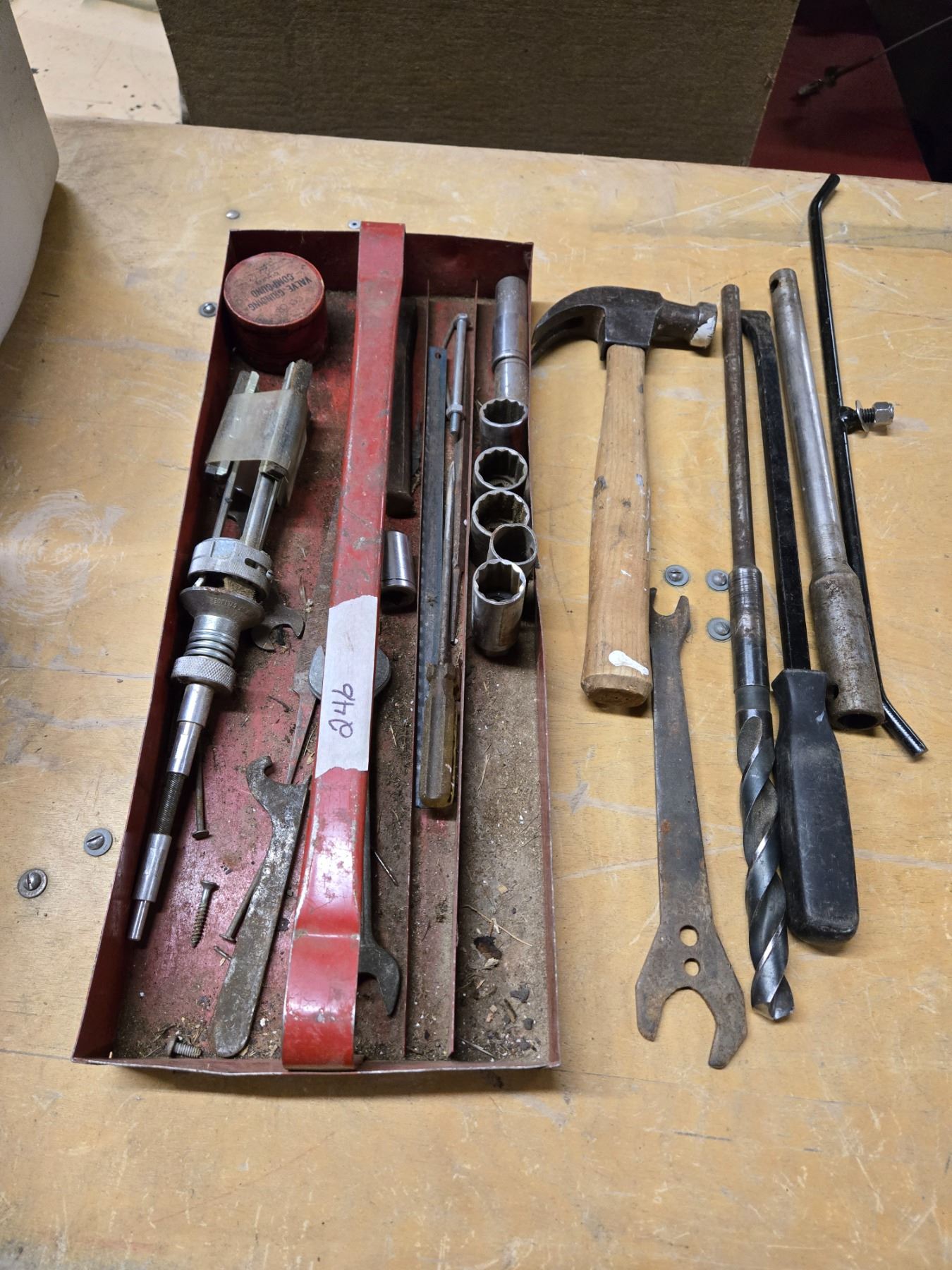 LOT OF VARIOUS SHOP TOOLS (HAMMER/SOCKETS,ETC.)