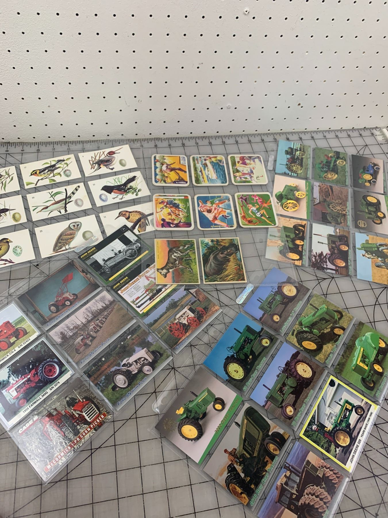 LOT OF VARIOUS VINTAGE TRADING CARDS TRACTORS CRACKER JACK BIRDS ETC