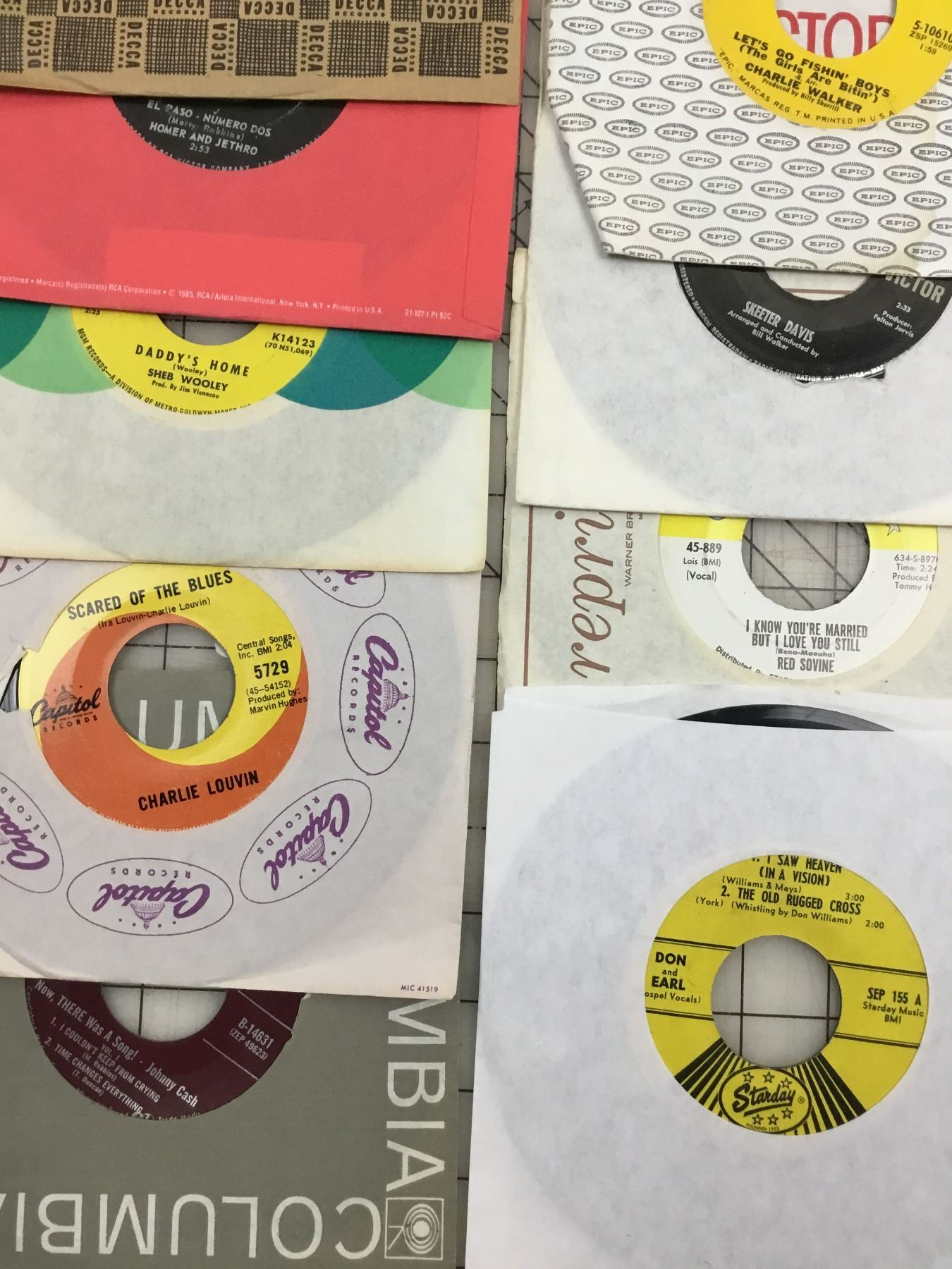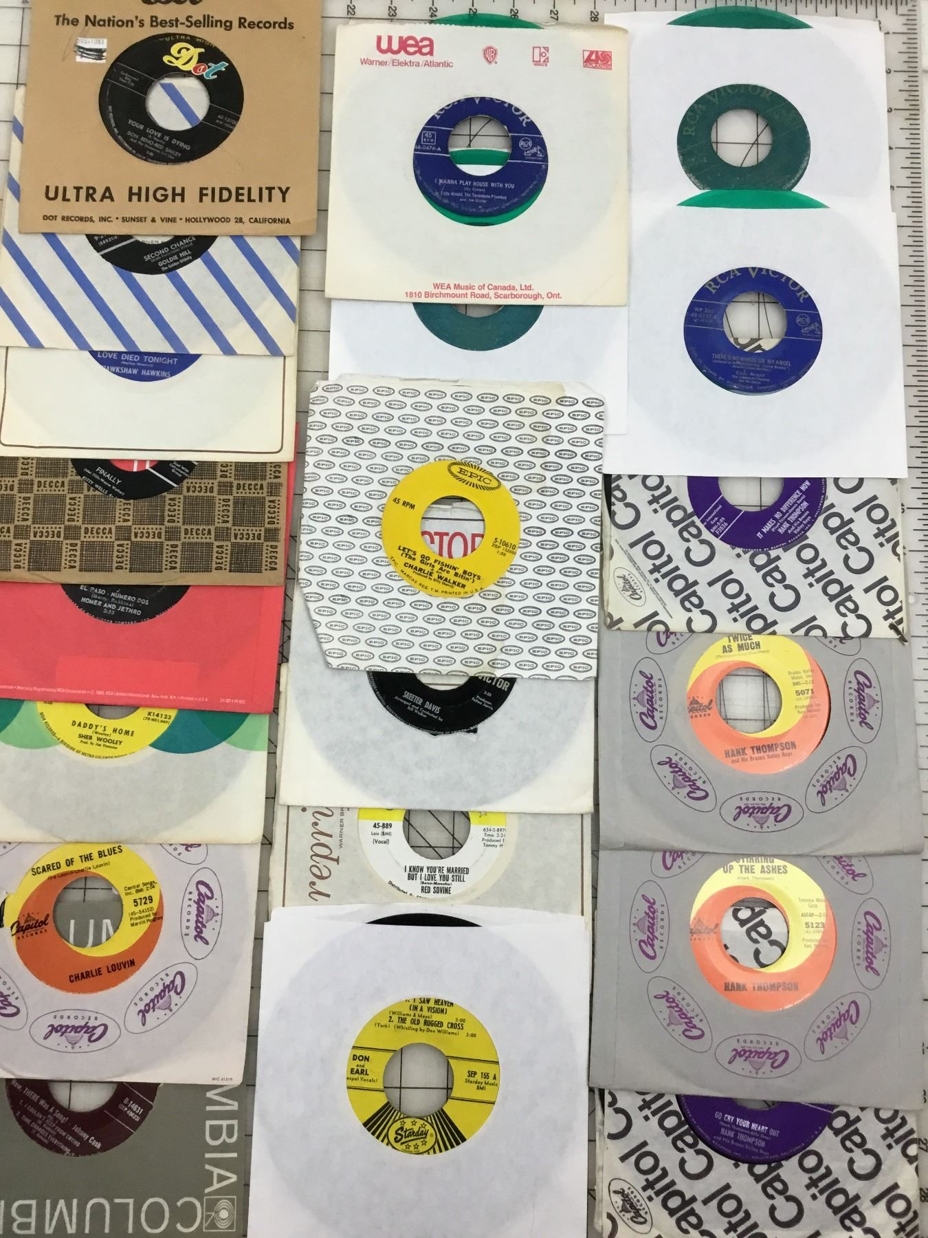 LOT OF VINTAGE 45RPM VINYL RECORDS EDDY ARNOLD, HANK THOMPSON, ETC