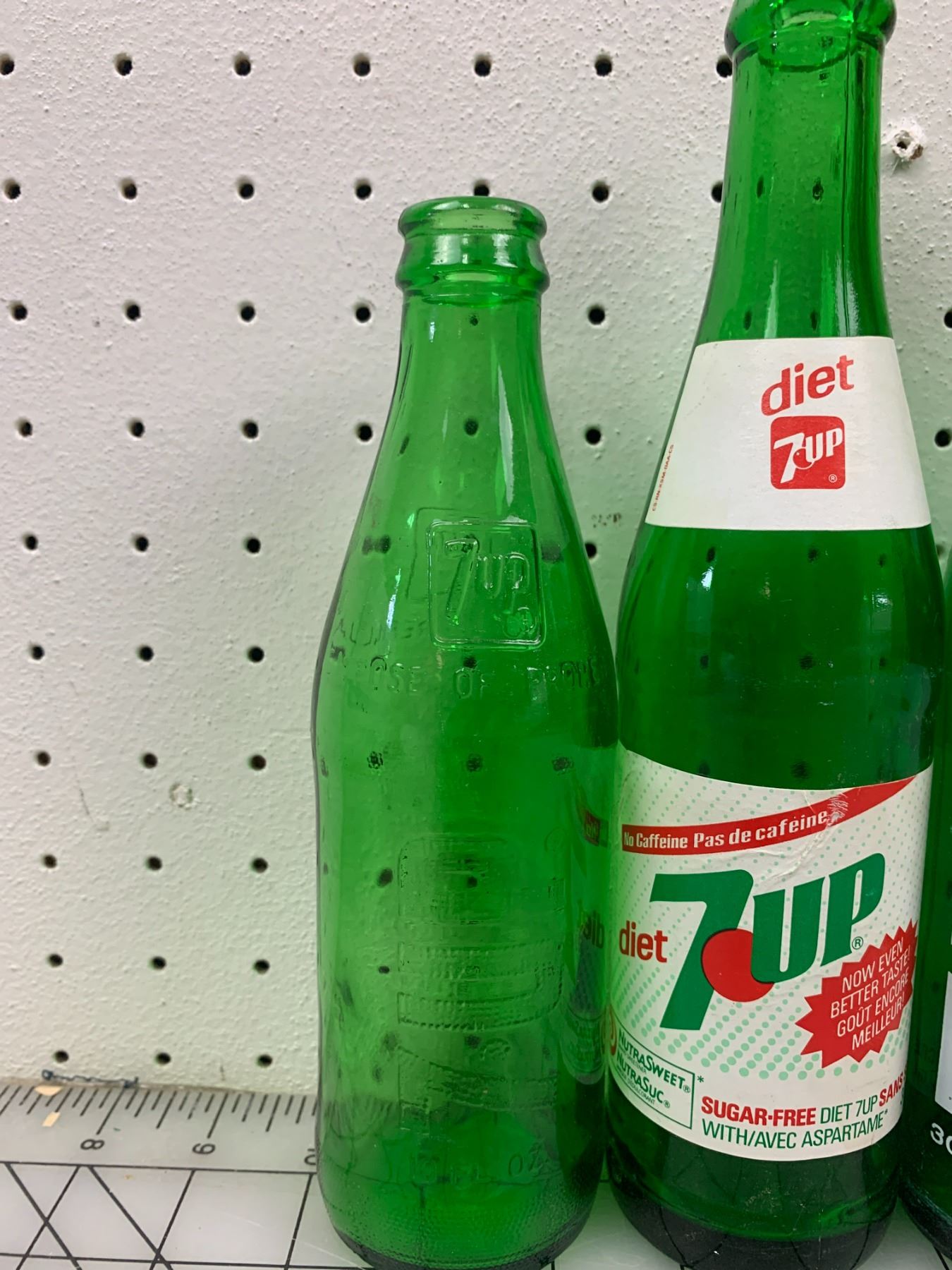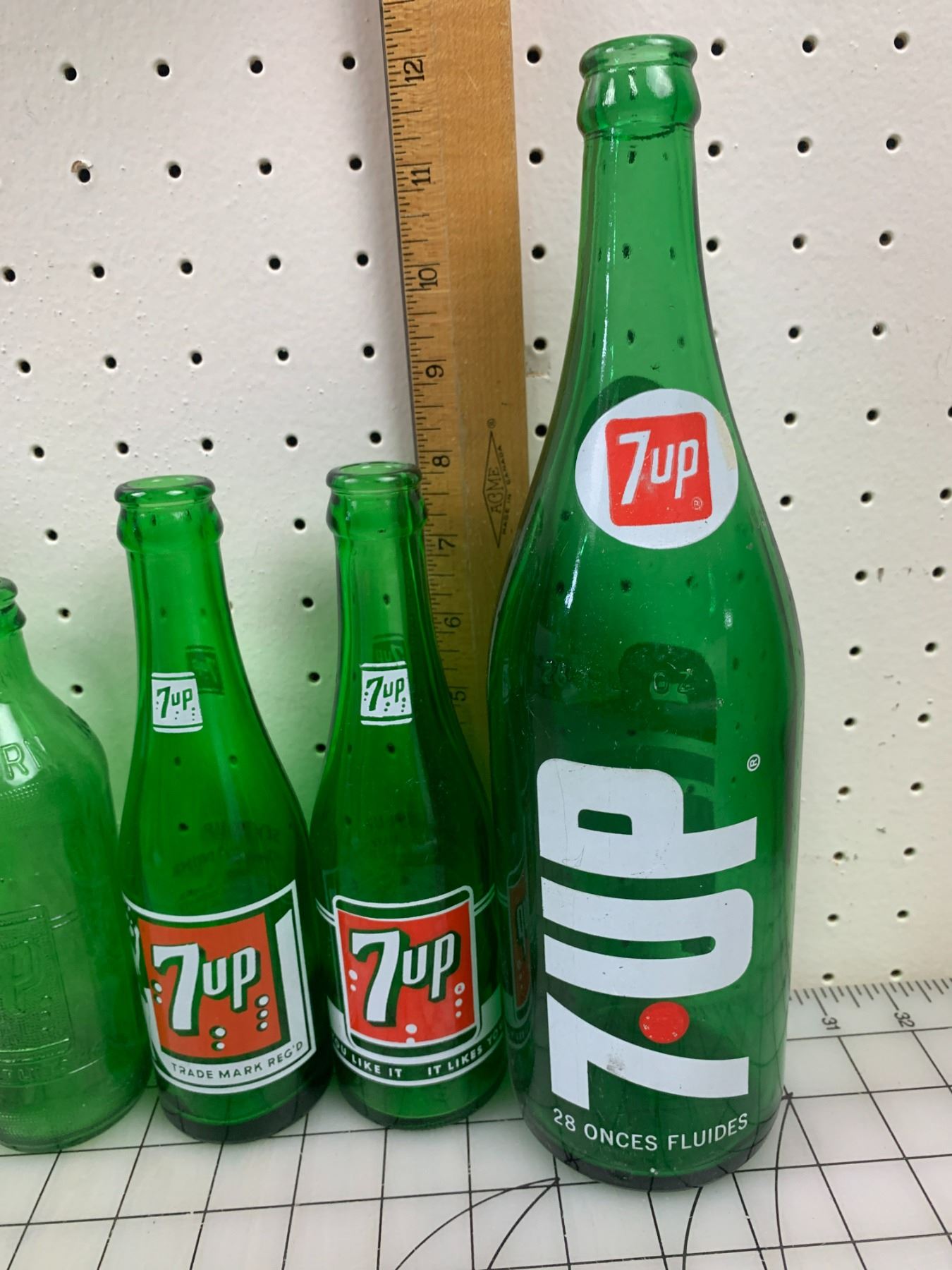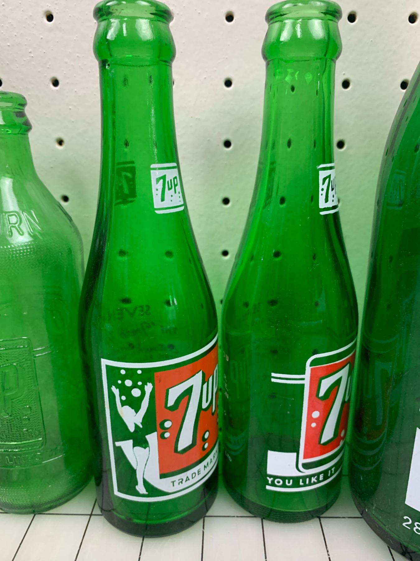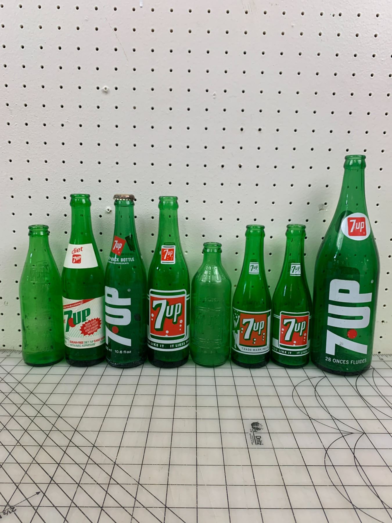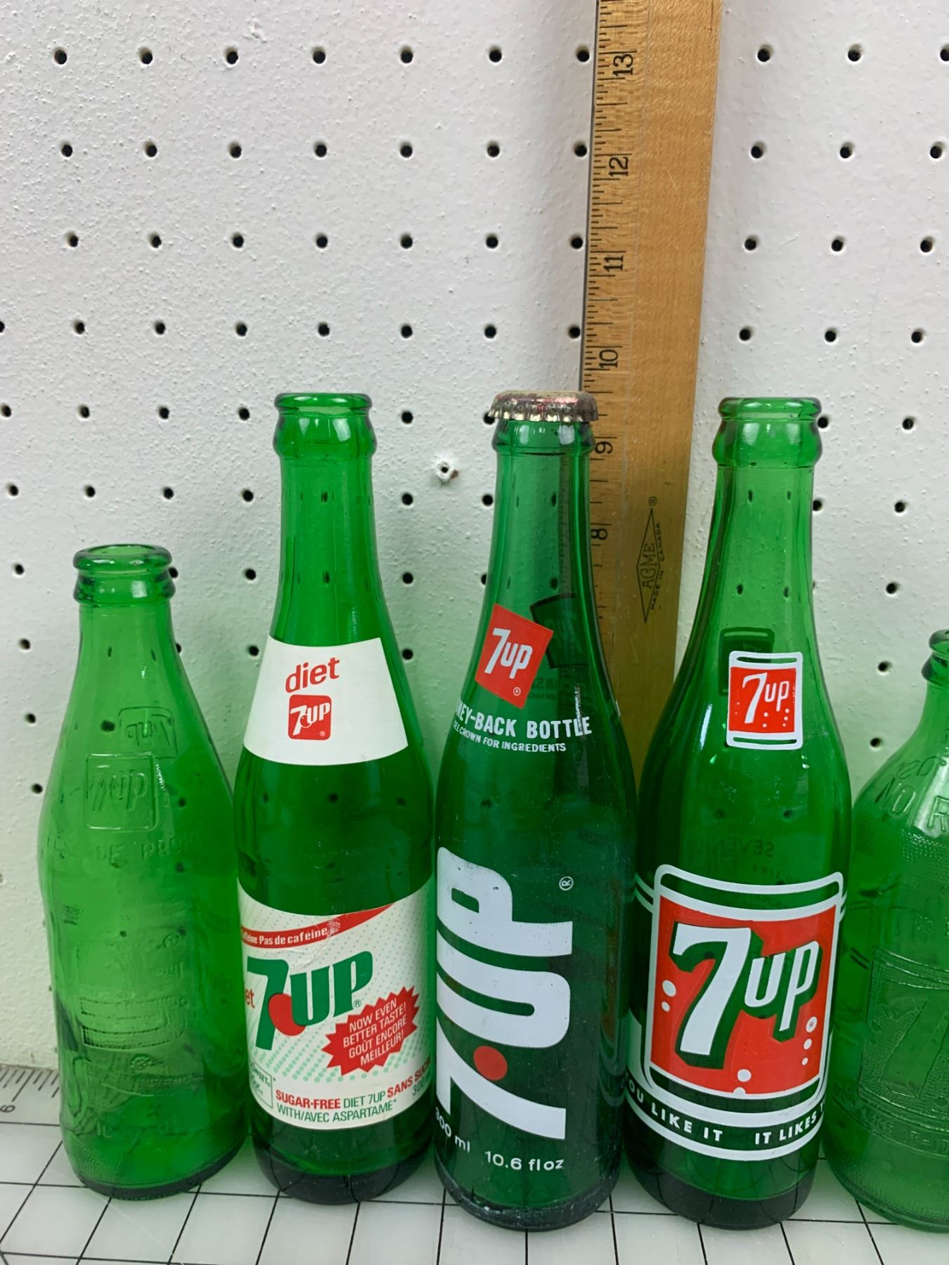 LOT OF VINTAGE 7-UP BOTTLES 8 DIFFERENT
