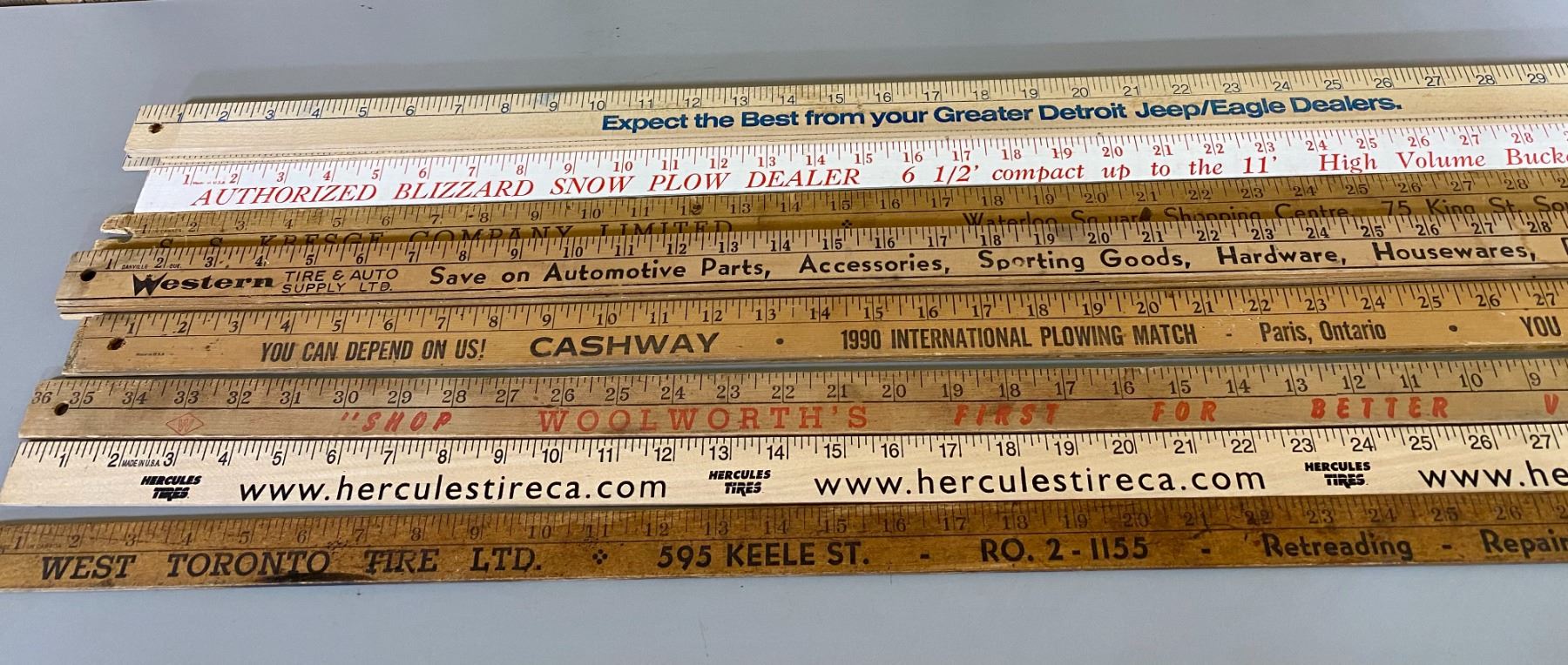 LOT OF VINTAGE ADVERTISING YARD STICKS