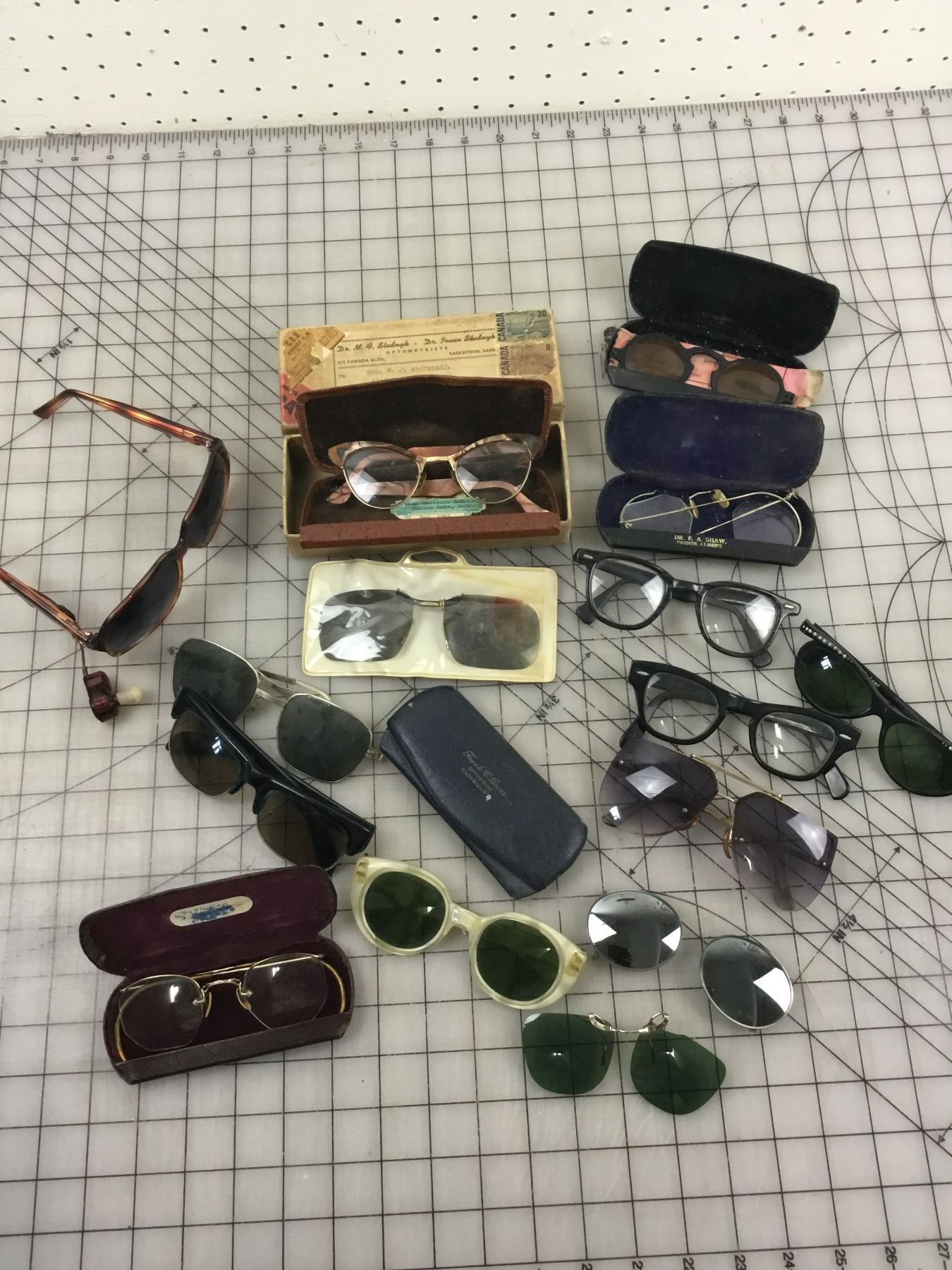 LOT OF VINTAGE ANTIQUE GLASSES SUNGLASSES CASES SOME BROKEN