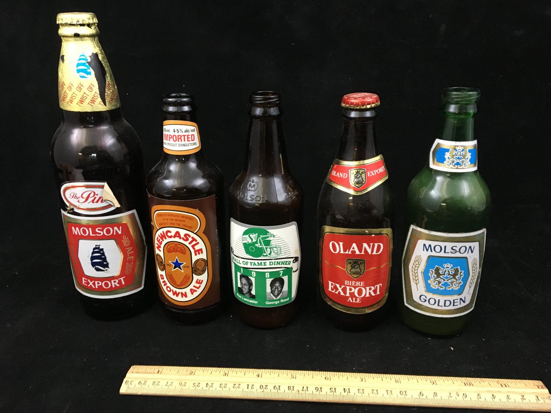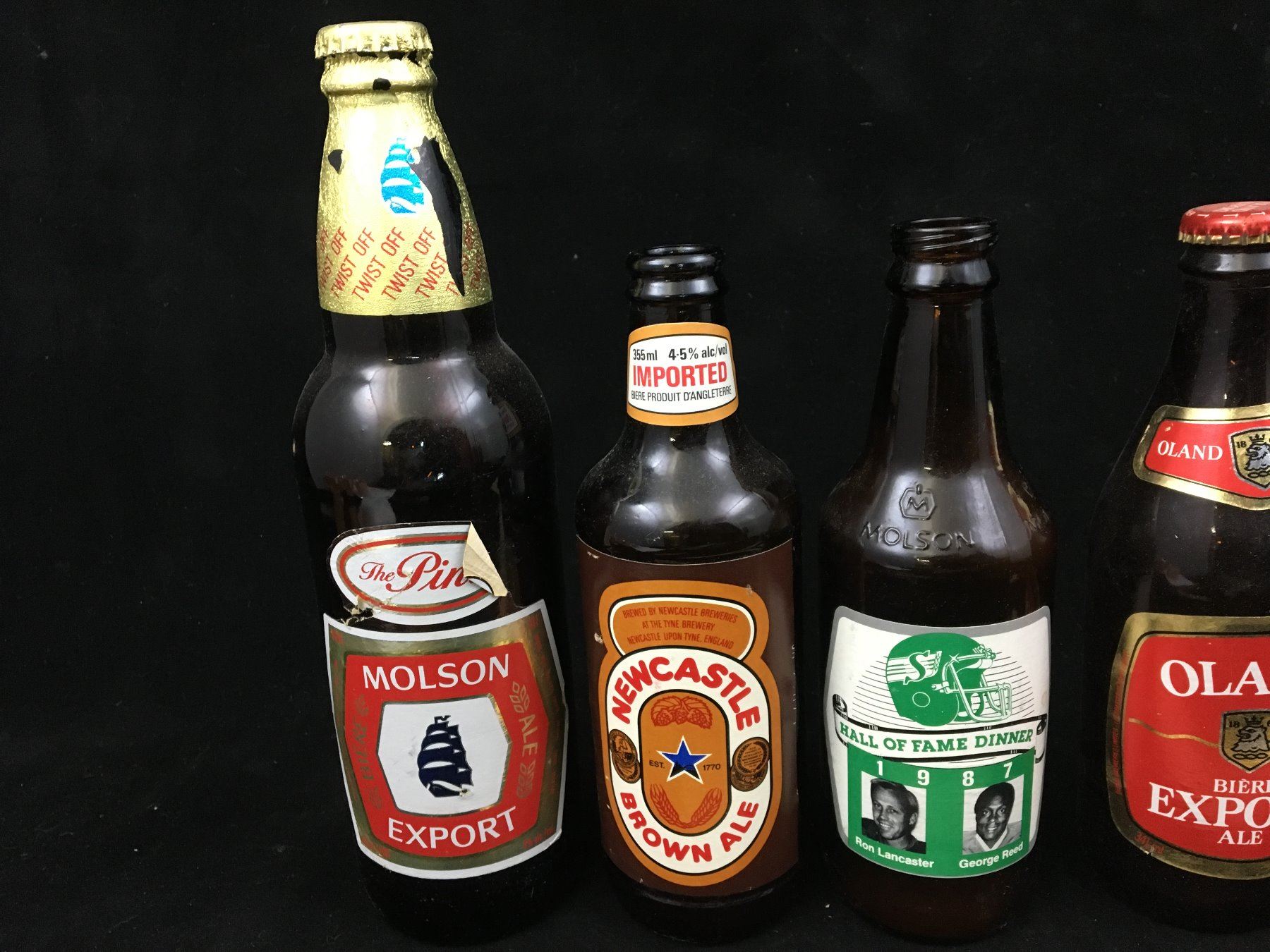 LOT OF VINTAGE BEER BOTTLES (EMPTY) *INCLUDING 1987 ROUGH RIDERS*