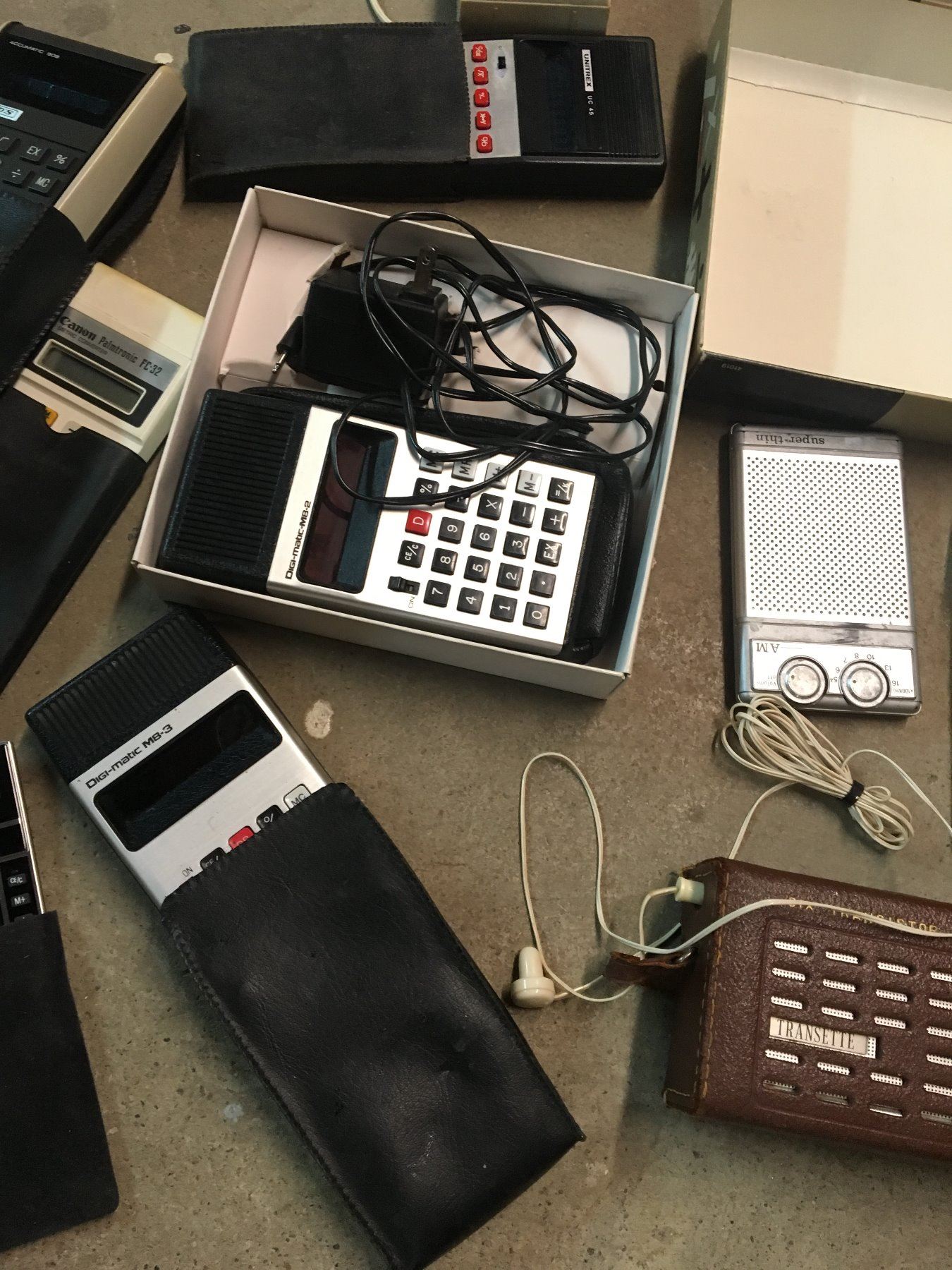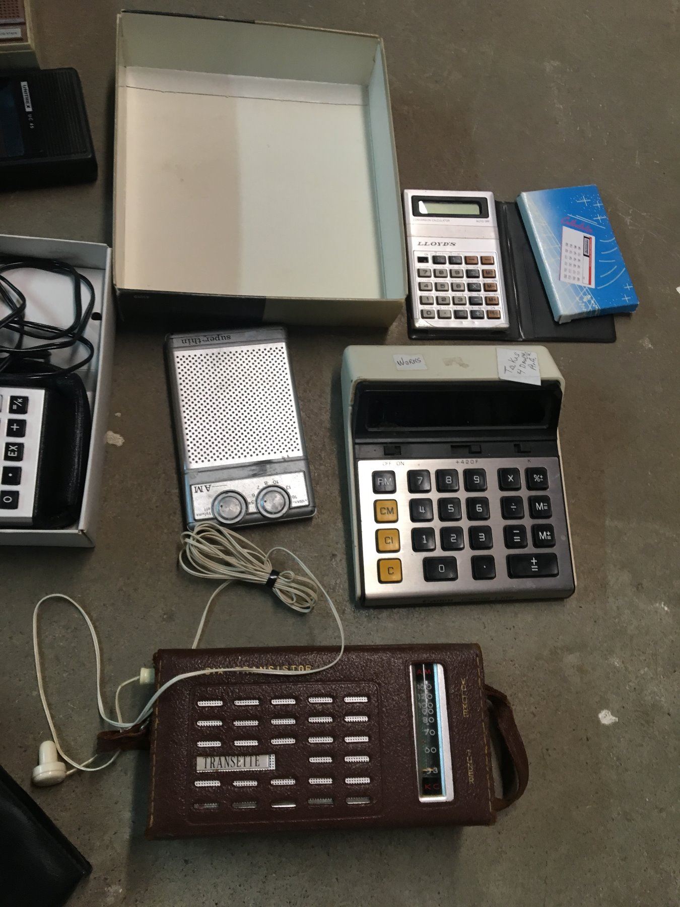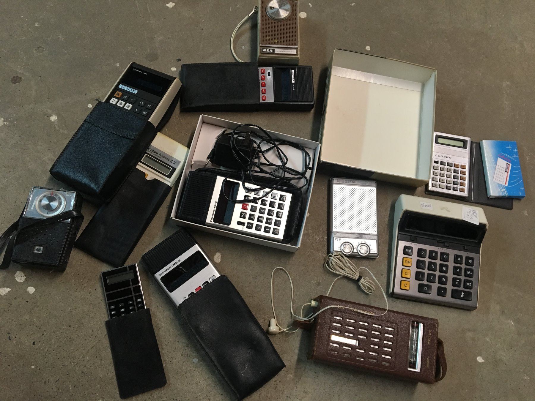 LOT OF VINTAGE CALCULATORS AND TRANSISTOR RADIOS