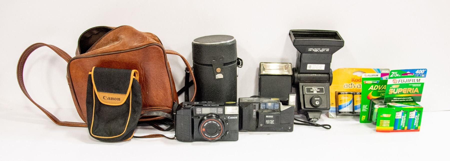 LOT OF VINTAGE CAMERAS, CAMERA CASES + FILM