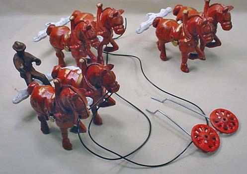 LOT OF VINTAGE CAST IRON HORSES AND 2 WHEELS