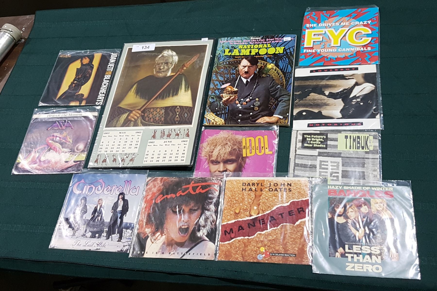 VINTAGE CALENDAR, NATIONAL LAMPOON MAGAZINE, & TEN PICTURE SLEEVE 45 RECORDS