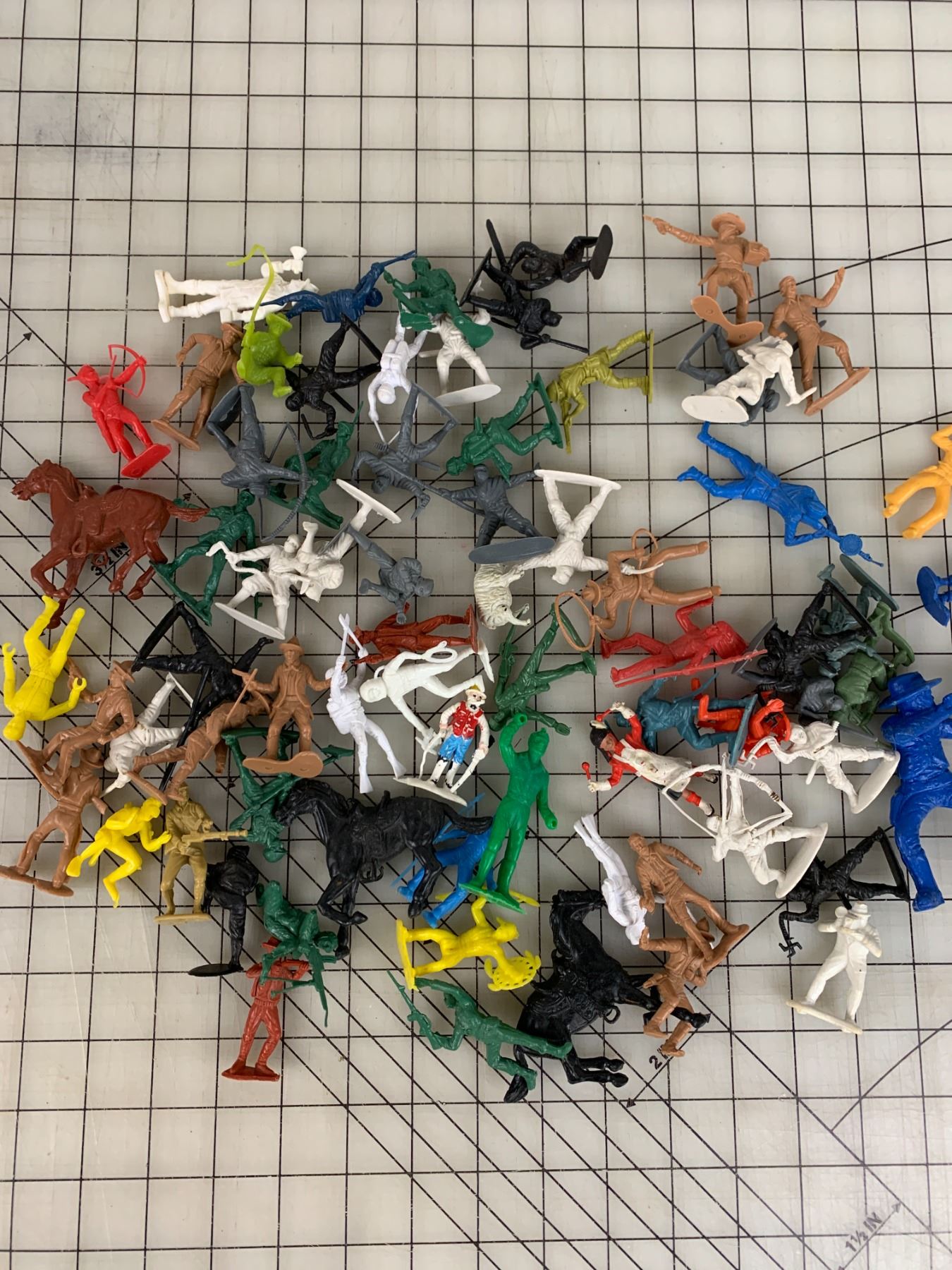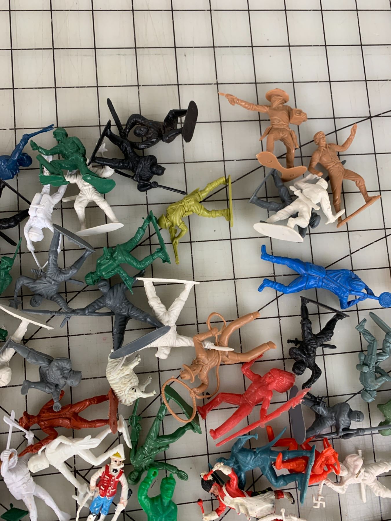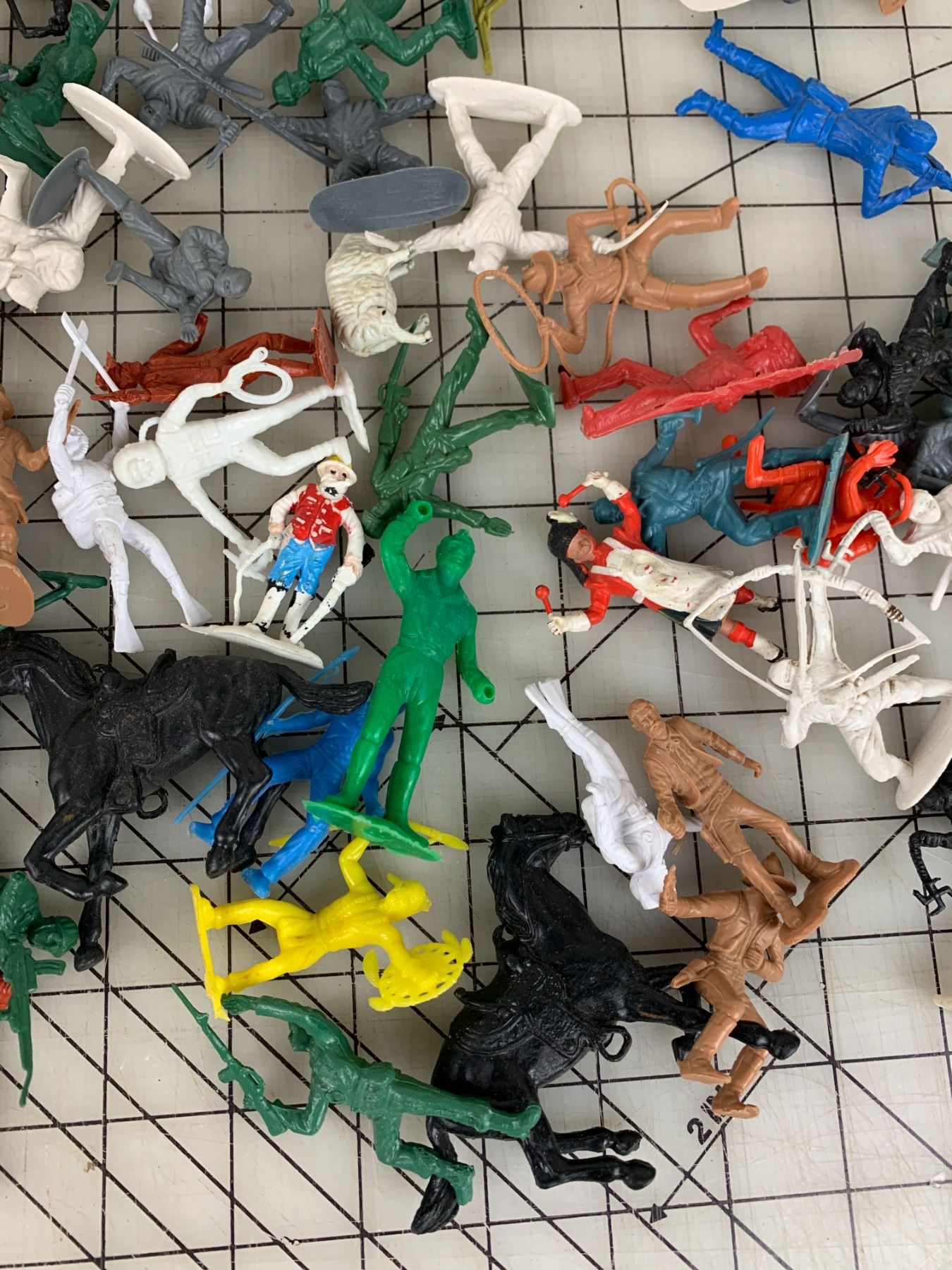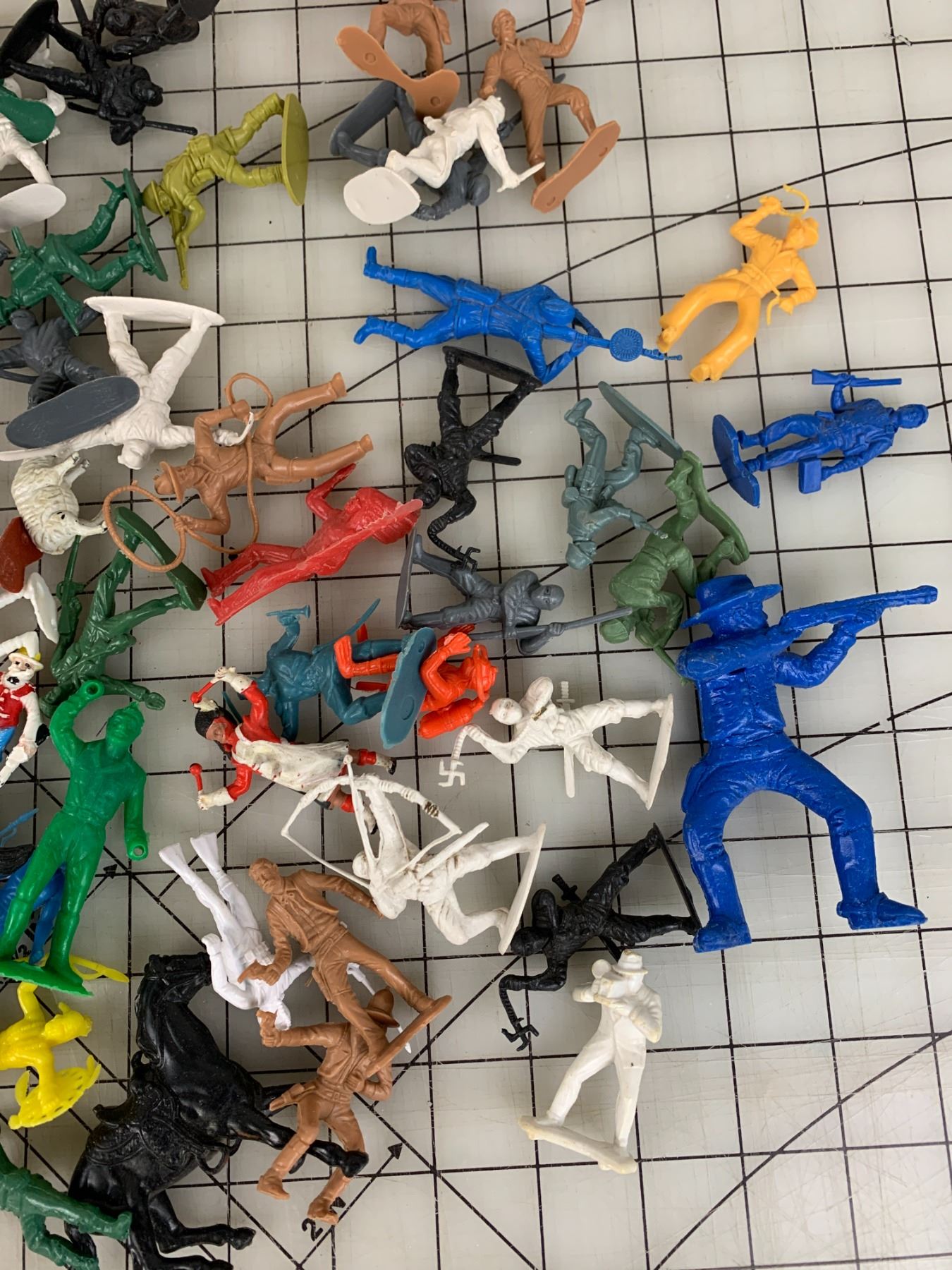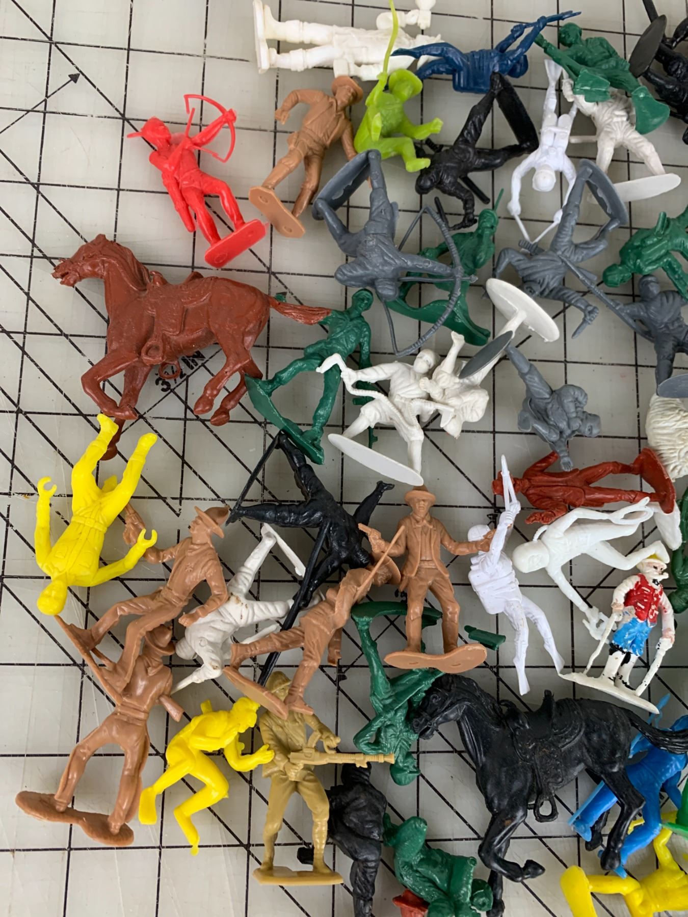 LOT OF VINTAGE COWBOY AND INDIAN TOYS SOLDIERS NINJAS AND MORE