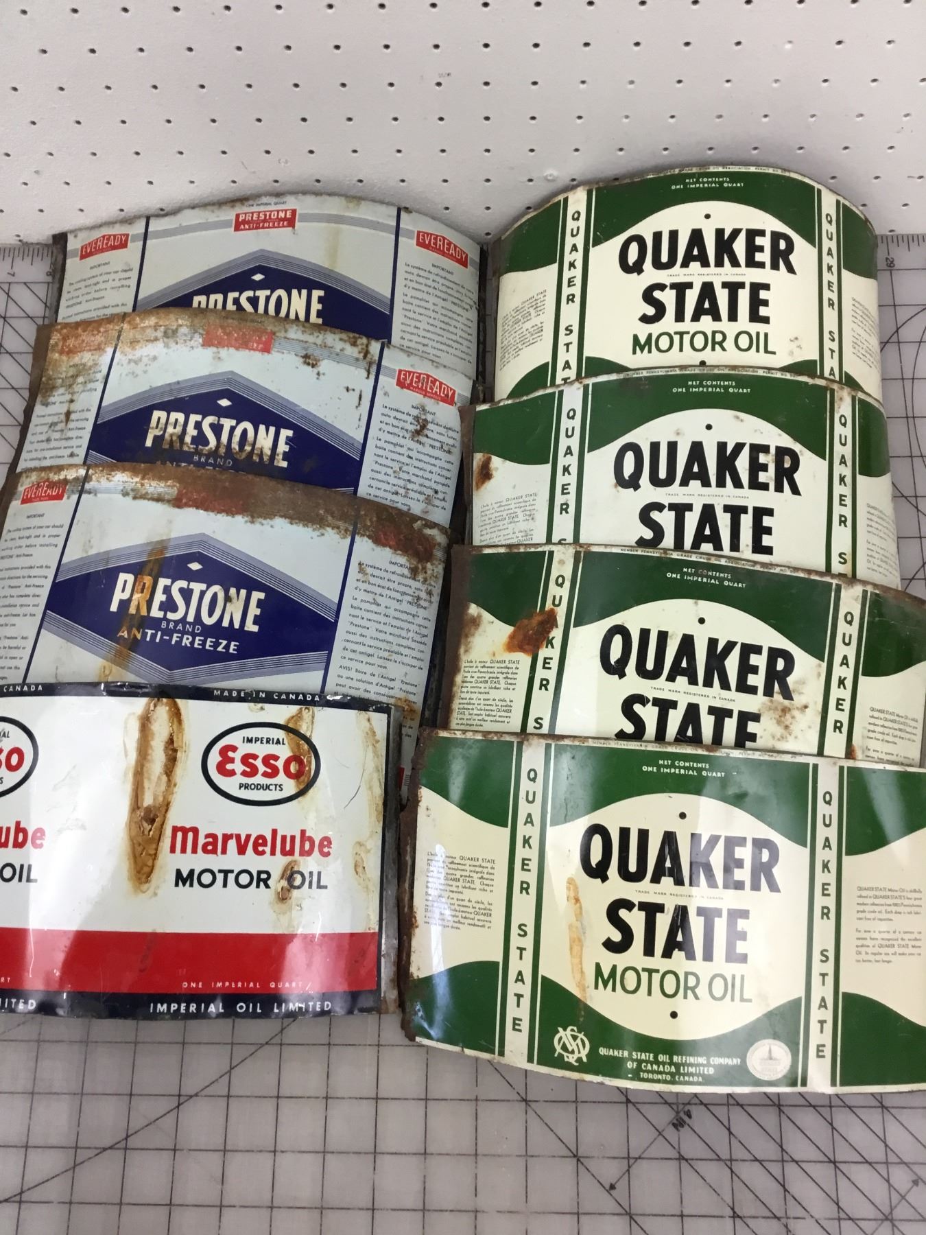 LOT OF VINTAGE FLATTENED OIL AND ANTIFREEZE CANS