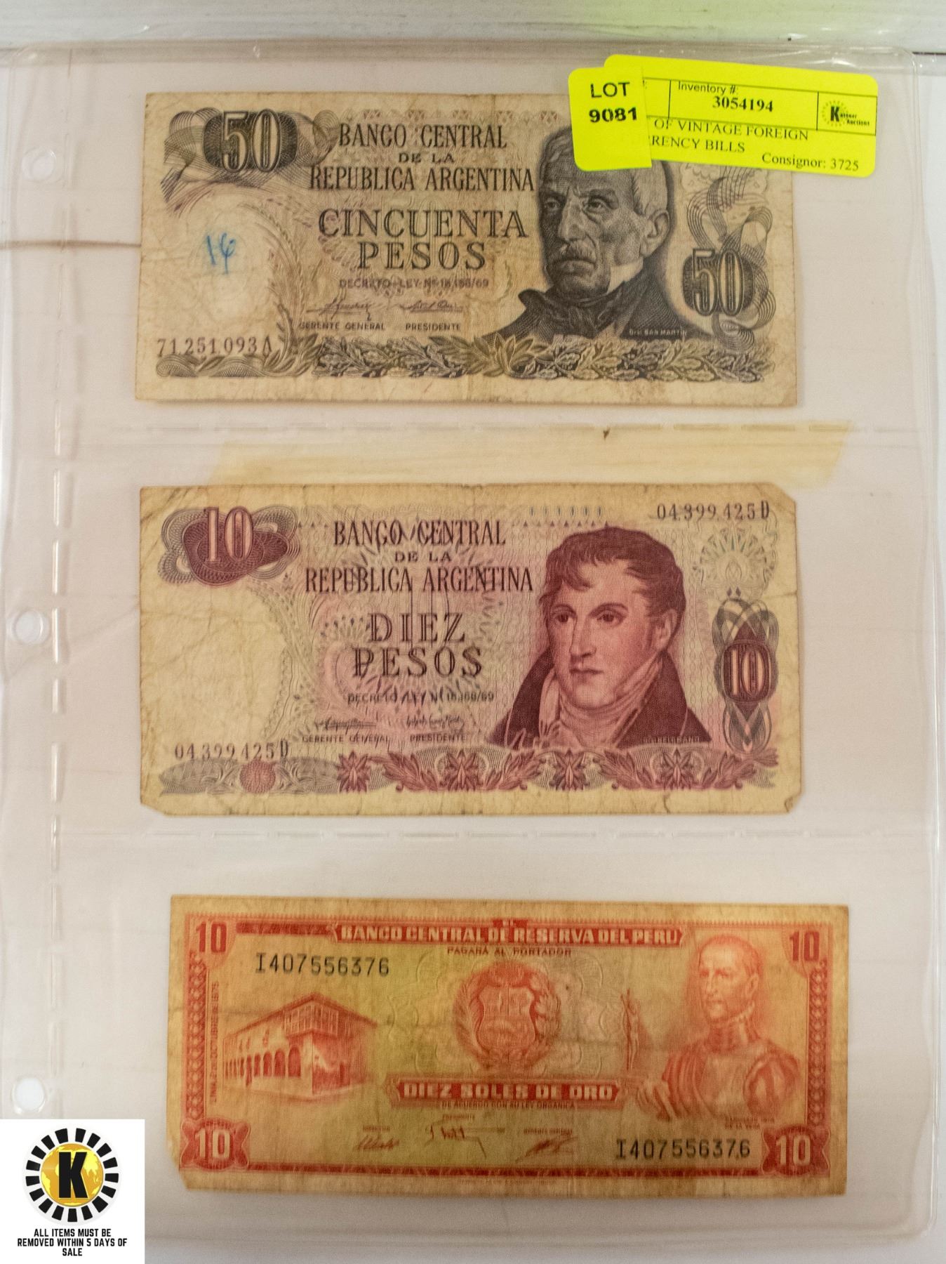 LOT OF VINTAGE FOREIGN CURRENCY BILLS