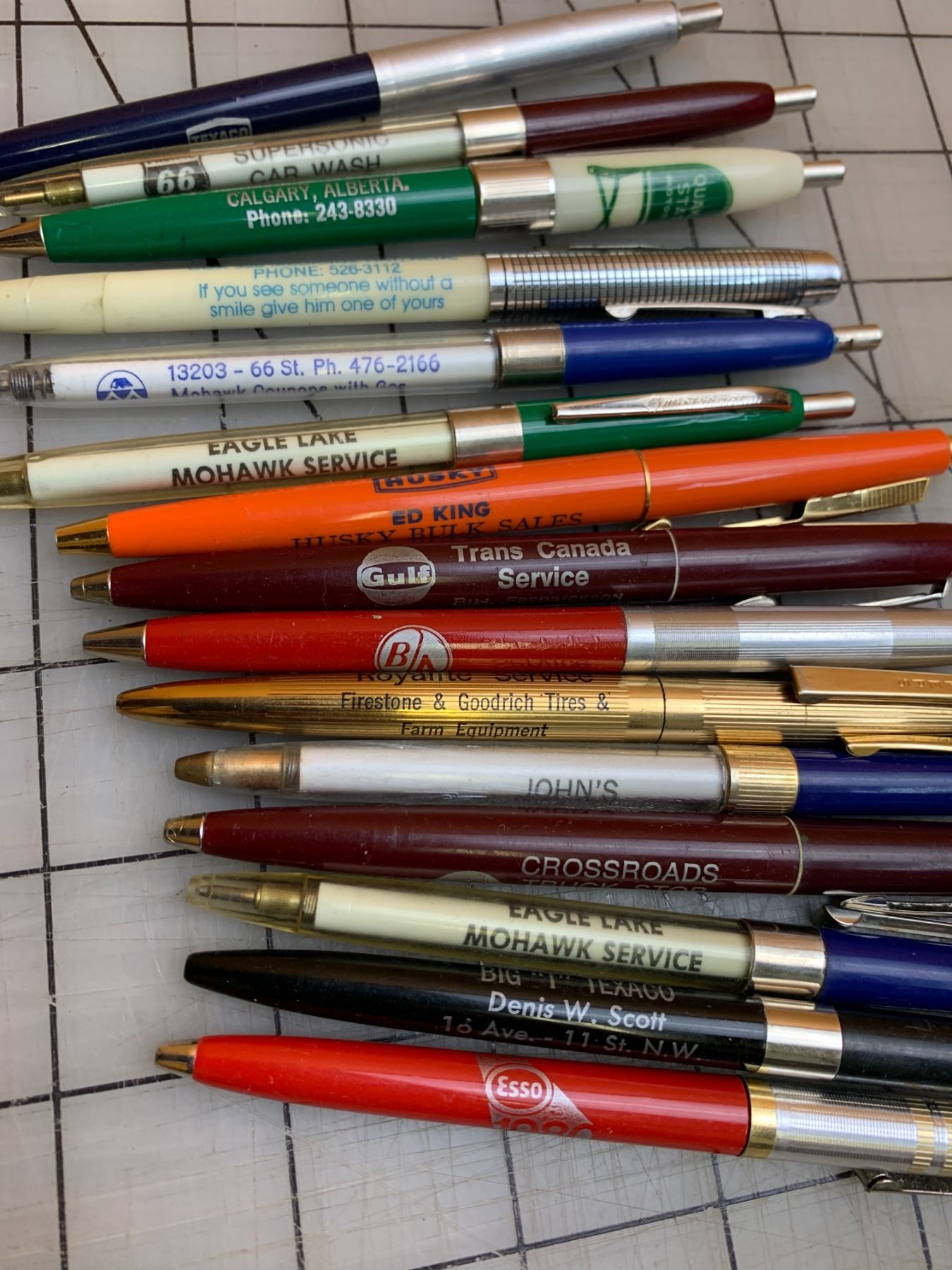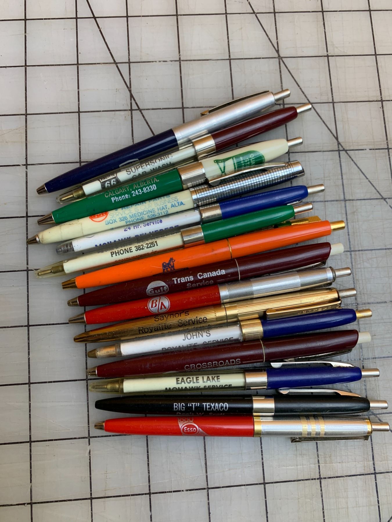 LOT OF VINTAGE GAS AND OIL ADVERTISING PENS B/A TEXACO PACIFIC 66 HUSKY GULF