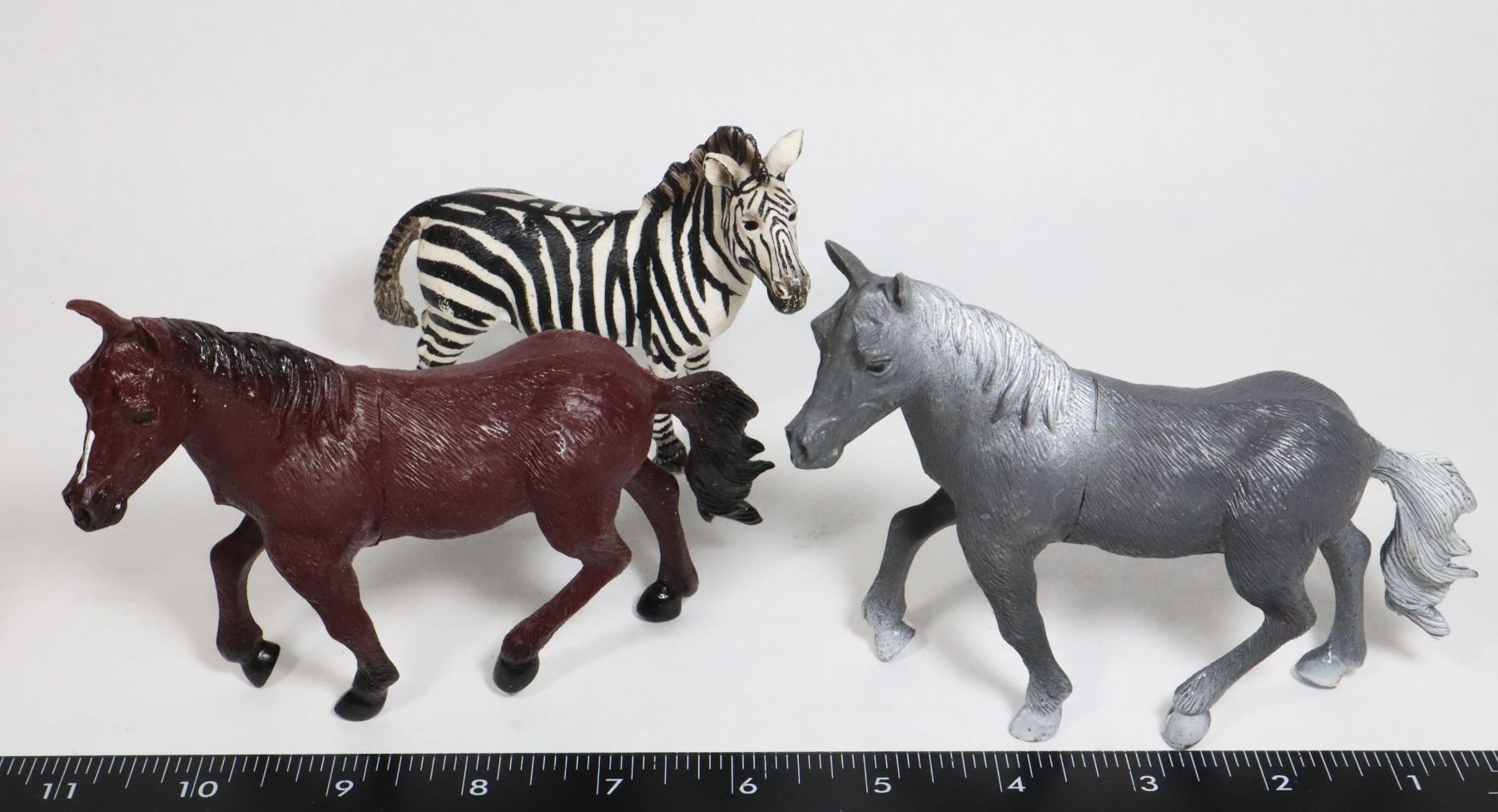 HORSES ARE GREENBRIER INTERNATIONAL. ZEBRA IS SCHEICH. GREY HORSE HAS SOME HOLES IN NECK