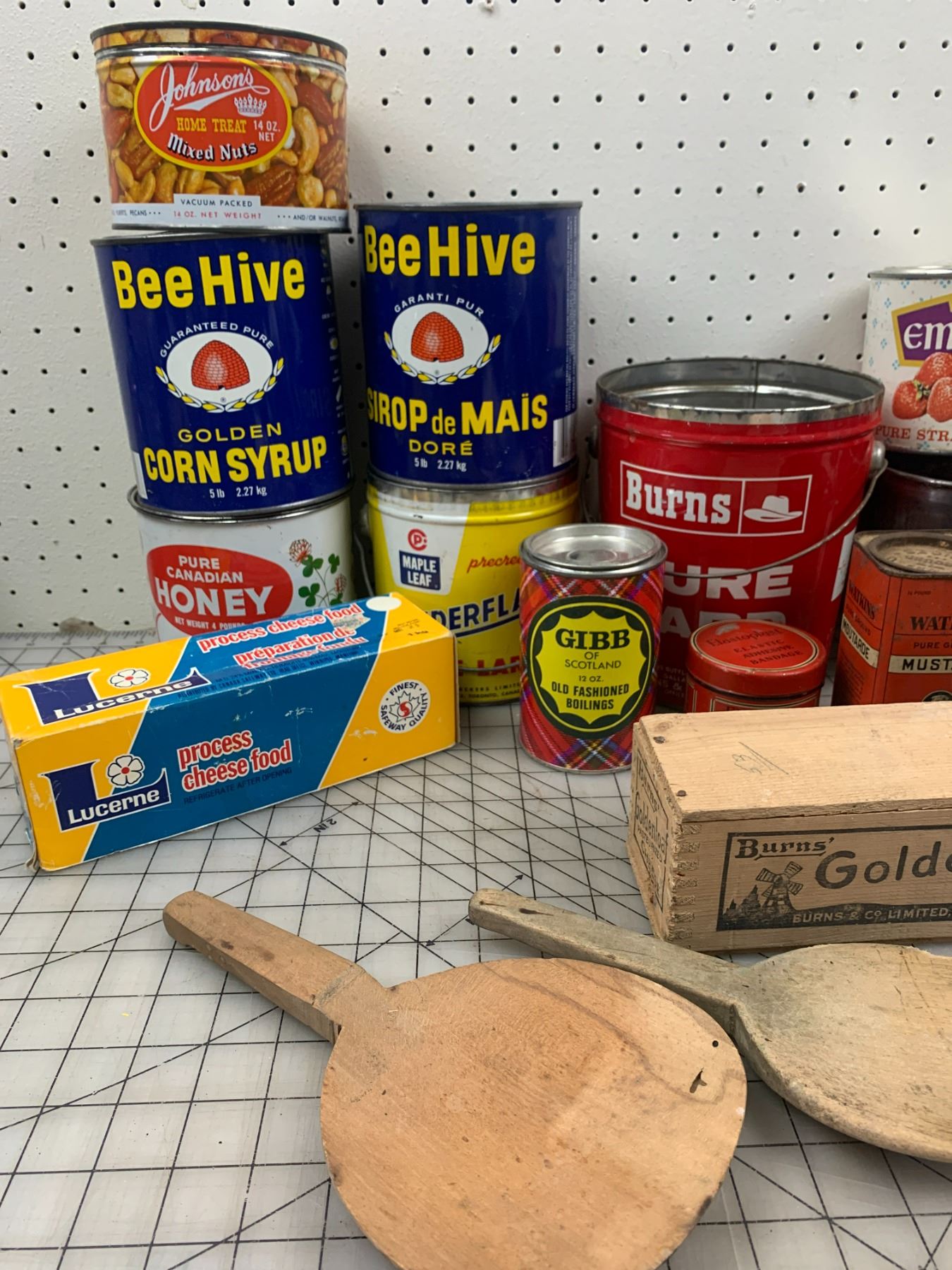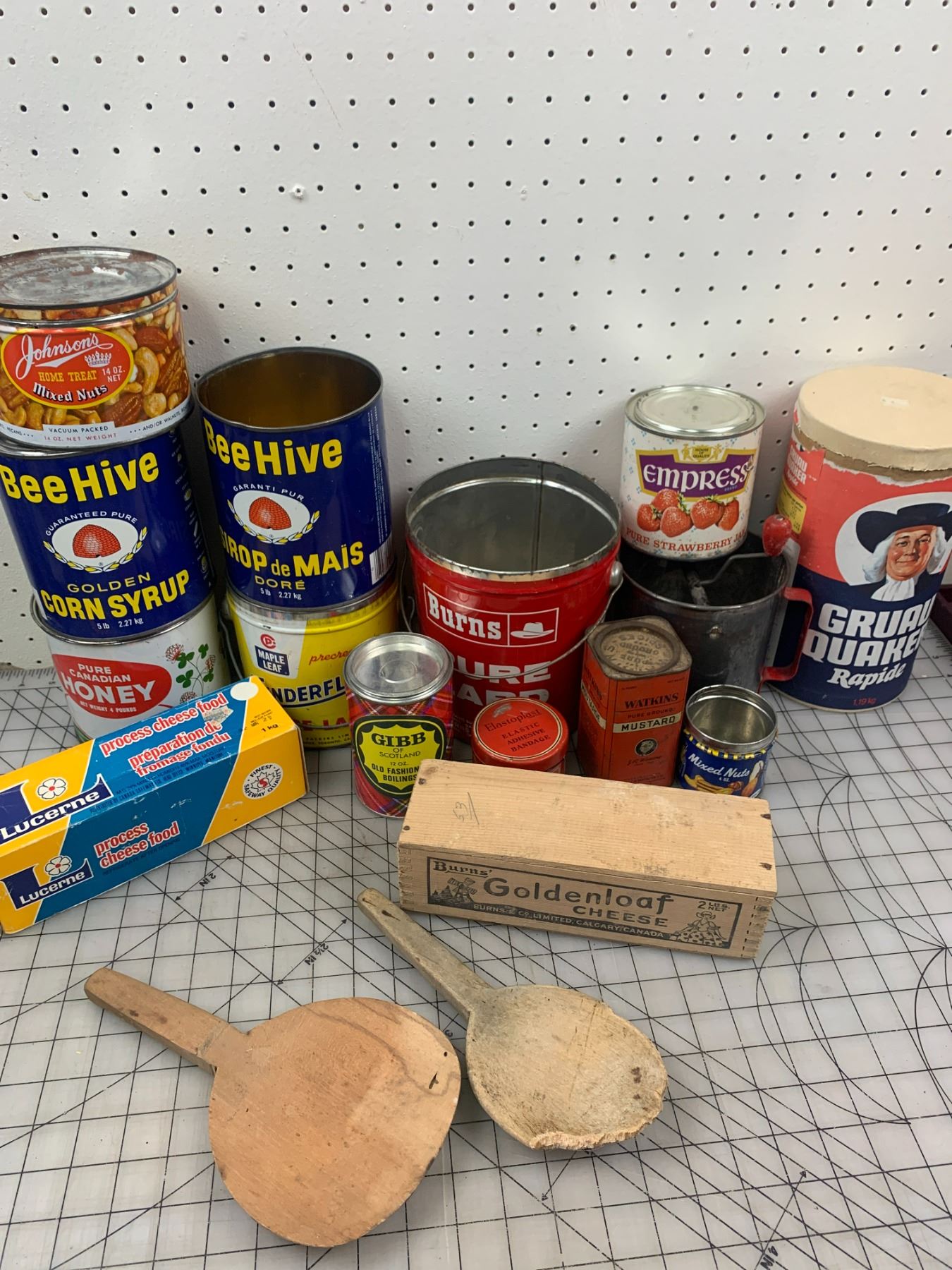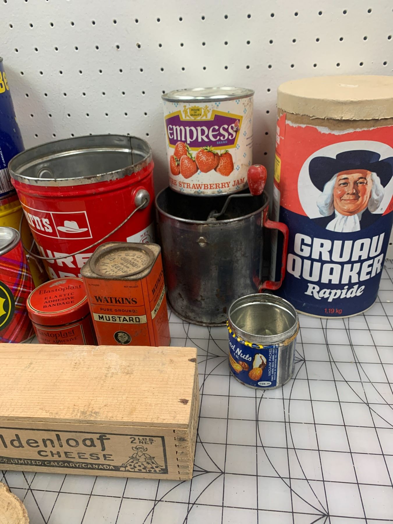 LOT OF VINTAGE KITCHEN RELATED TIN CHEESE BOXES ETC