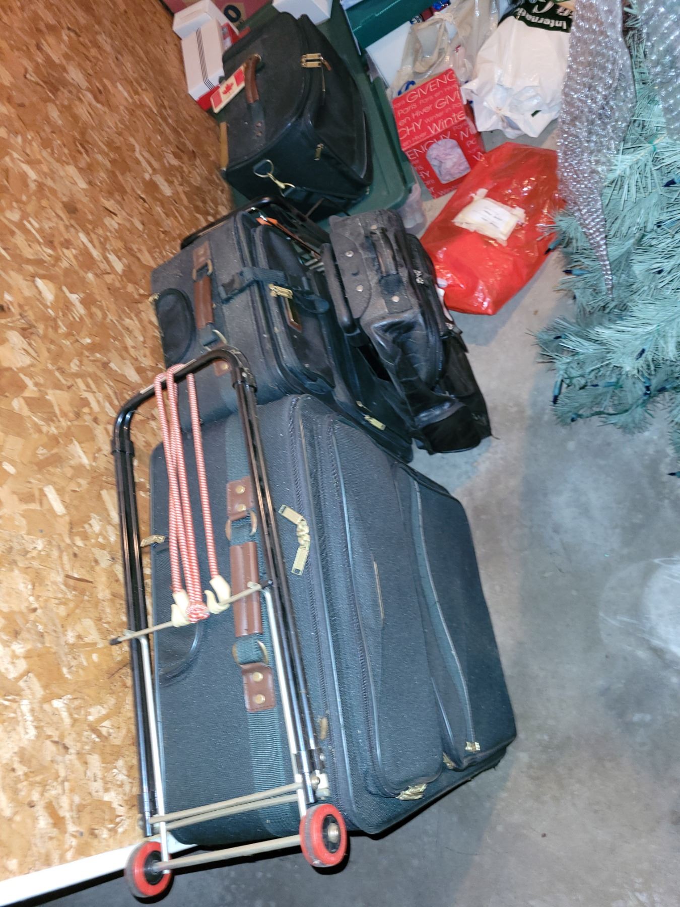 5+ PIECES OF OLDER LUGGAGE AND 2 LUGGAGE DOLLIES. SEE PICTURES