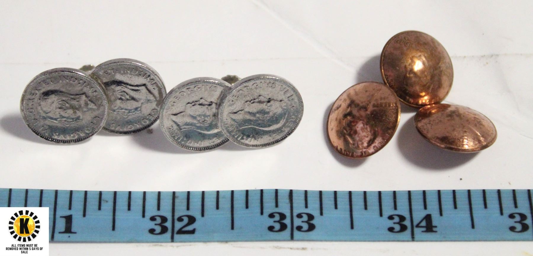 LOT OF VINTAGE PENNY EARRINGS & BUTTONS
