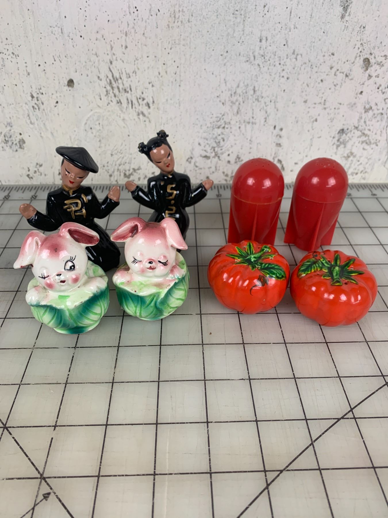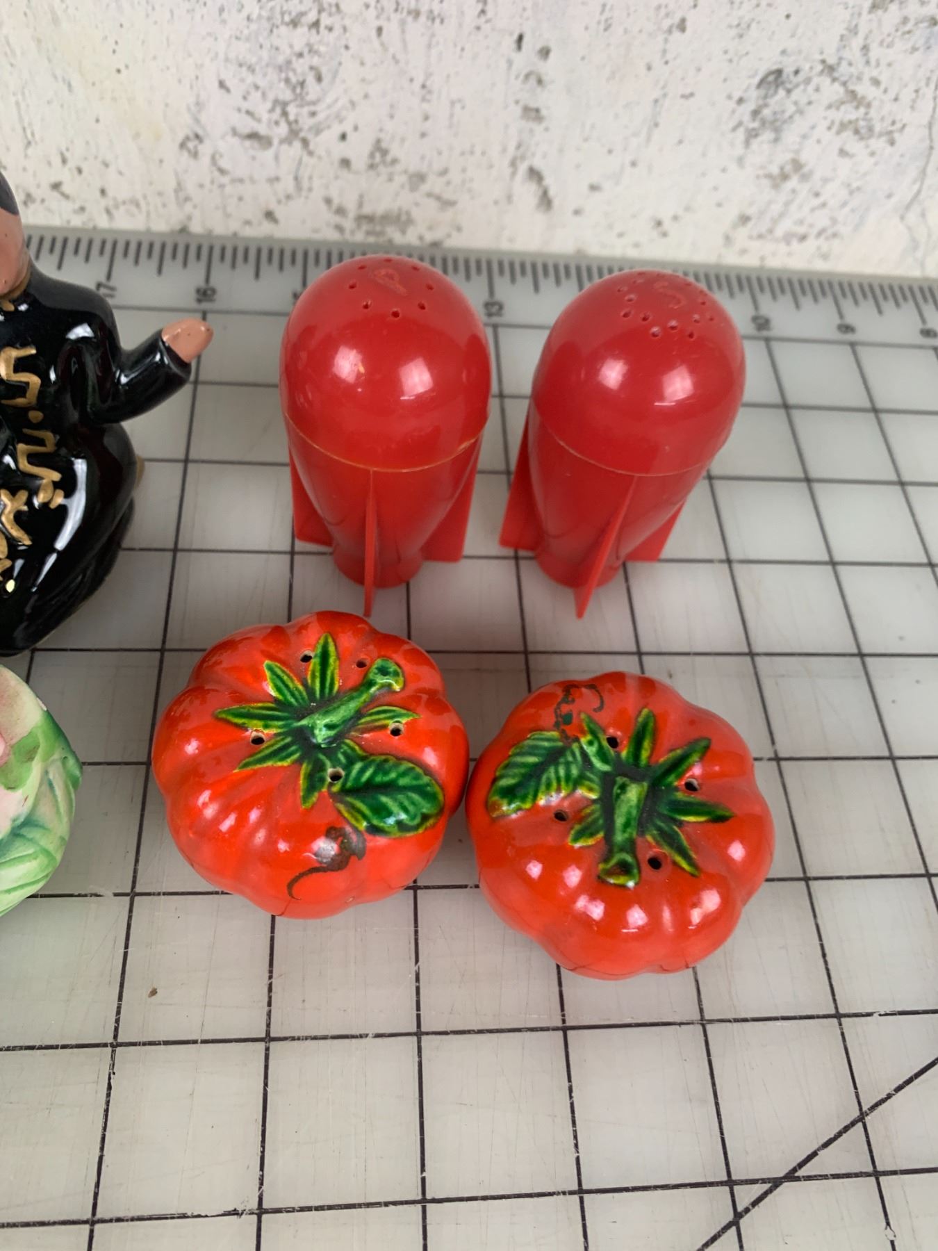 LOT OF VINTAGE SALT AND PEPPER SHAKERS TOMATOES ROCKETS ETC