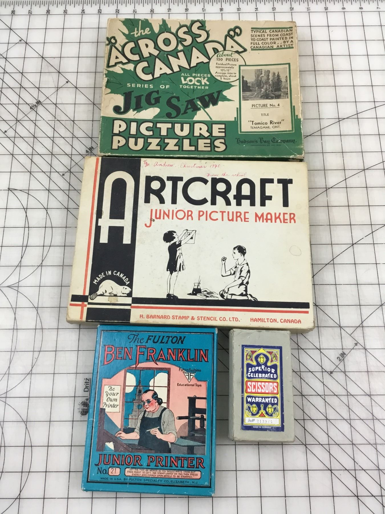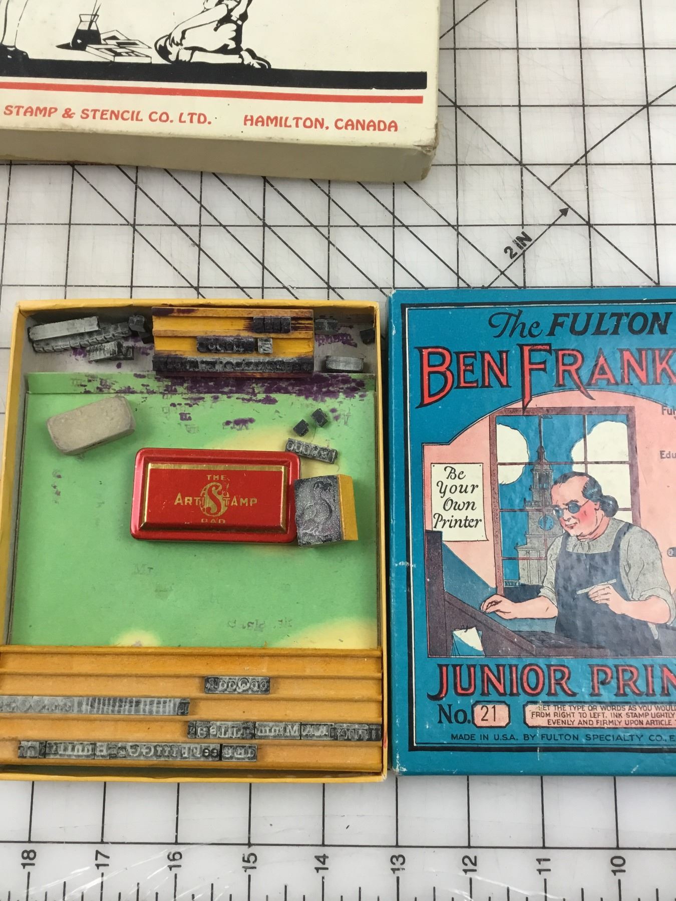 LOT OF VINTAGE SCHOOL AND CRAFT SUPPLIES PICTURE MAKER, STAMP KIT, ETC