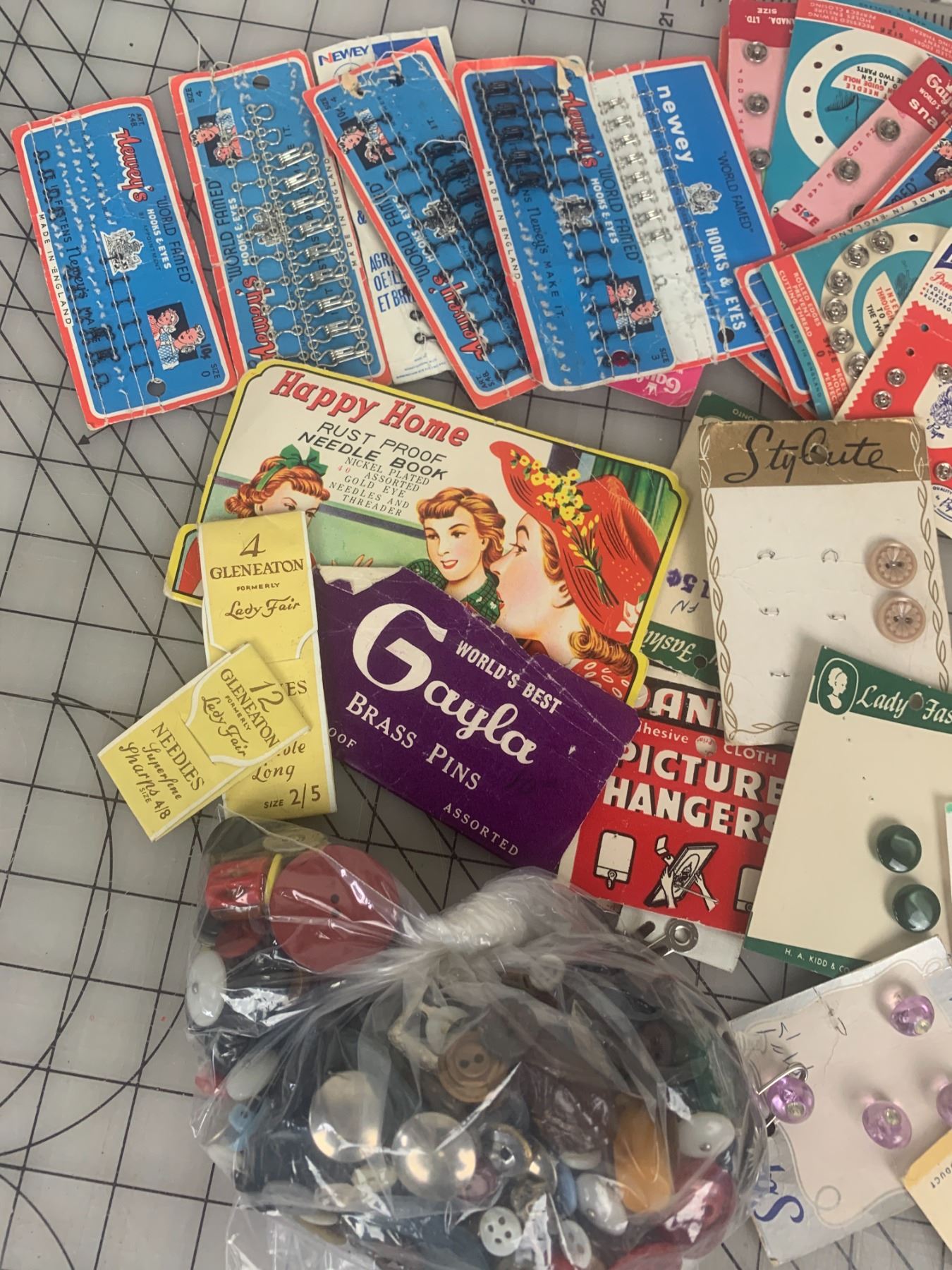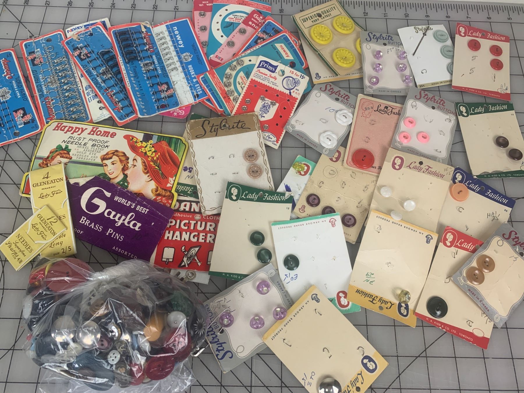 LOT OF VINTAGE SEWING BUTTONS ETC