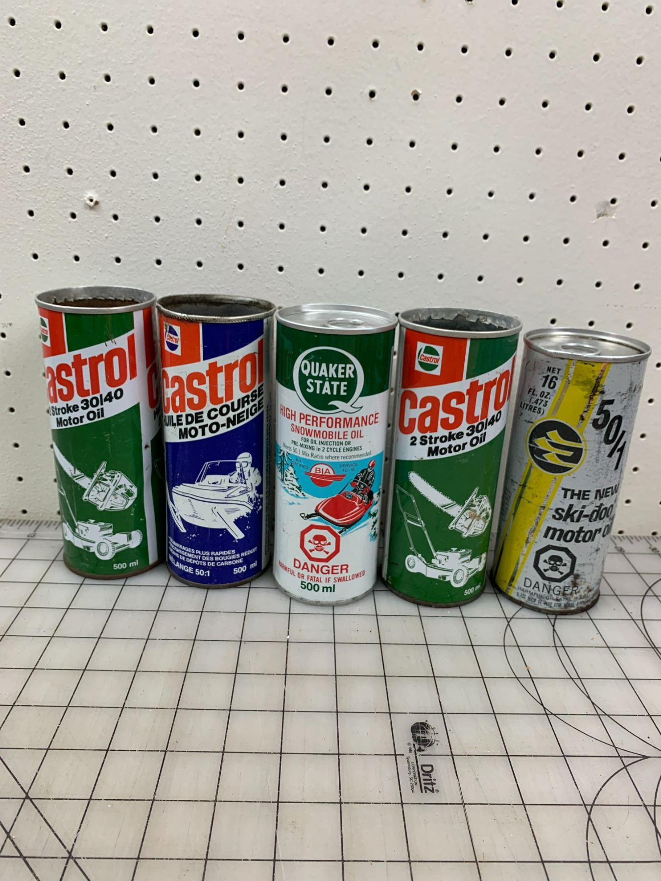LOT OF VINTAGE SNOW MOBILE OIL CANS 2 UNOPENED