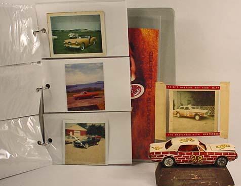 LOT OF VINTAGE SPORTSCAR PHOTOS AND A COUGAR MODEL CAR