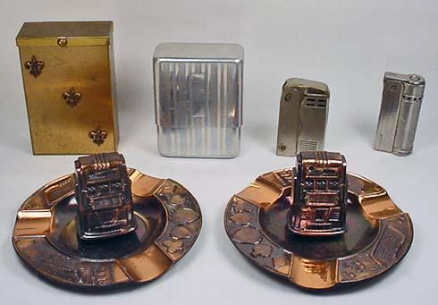LOT OF VINTAGE TOBACCIANA - INCL. CIGARETTE CASES, LIGHTERS, SOUVENIR ASHTRAYS