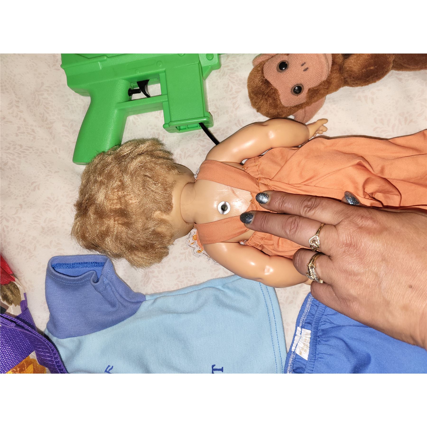 LOT OF VINTAGE TOYS IN 1980S DIAPER BAG