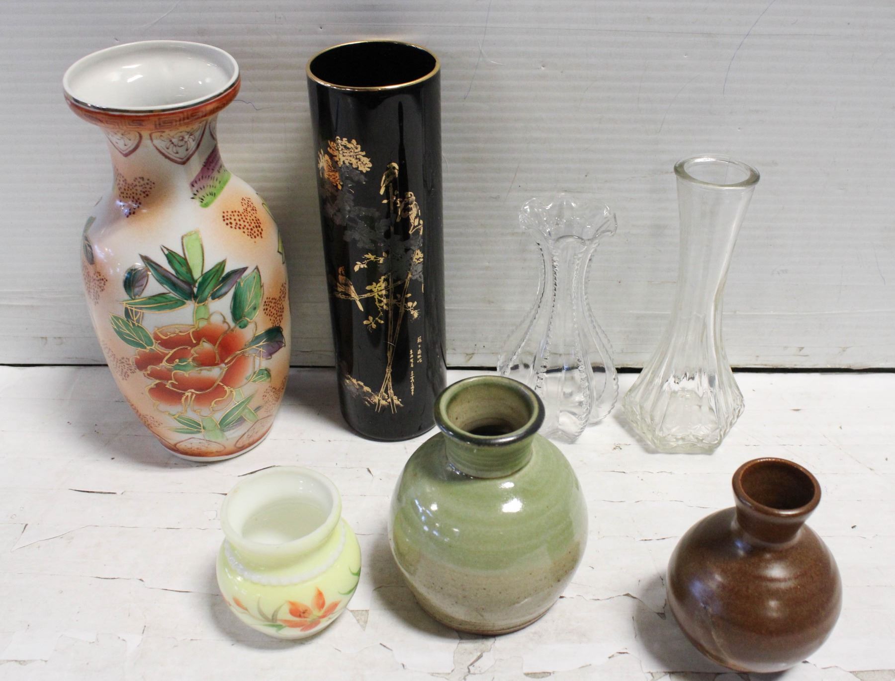 LOT OF VINTAGE VASES INCLUDING HOOSIER GLASS