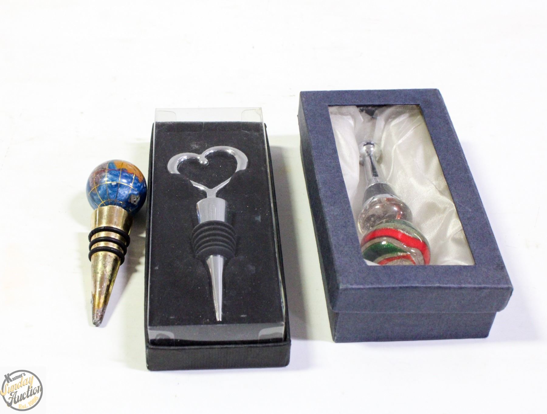 LOT OF WINE BOTTLE STOPPERS INCL PRECIOUS STONE