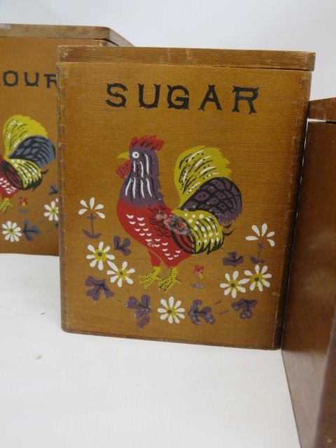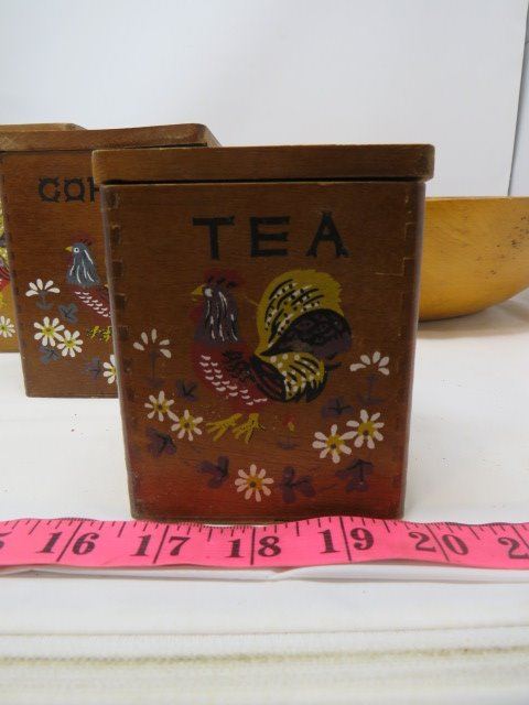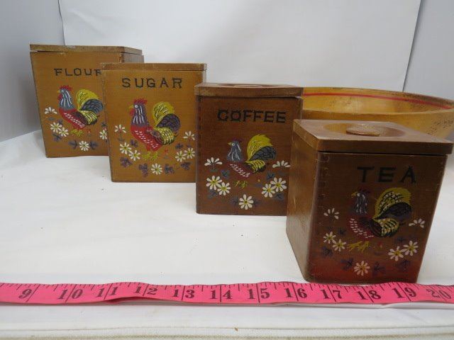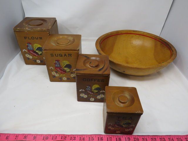 LOT OF WOOD ITEMS (SET OF CANISTERS AND BOWL) *VINTAGE*