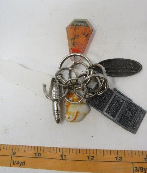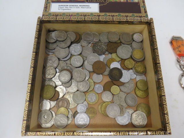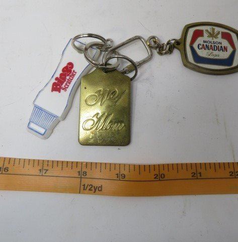 LOT OF WORLD COINS AND KEYCHAINS (VARIOUS CURRENCIES) *MOLSON CANADIAN, MUM, ETC*
