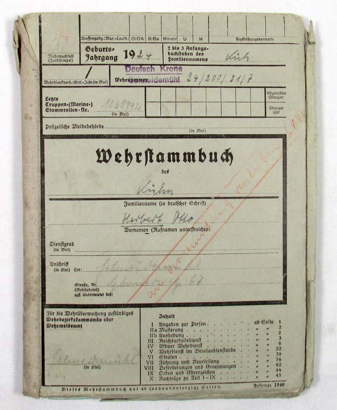 LOT OF WW2 GERMAN NAZI SOLDIER'S PAPERS - Partly printed book, Wehrsammbuch (Military book) for Otto Herbert incl. his personal information and other paperwork. Soldbuch (Soldier Book) and Gesunheitsbuch (Health Book).