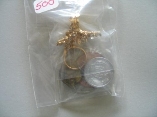 LOT, RING W/DIAMOND & SAPPHIRES, RING & COINS