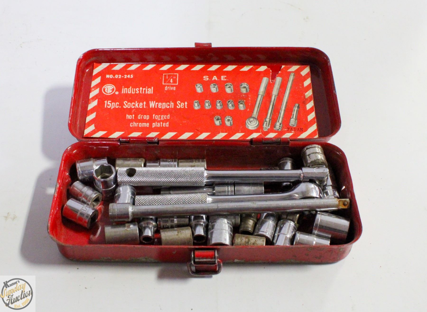 LOT SOCKET WRENCH WITH SOCKETS IN METAL CASE