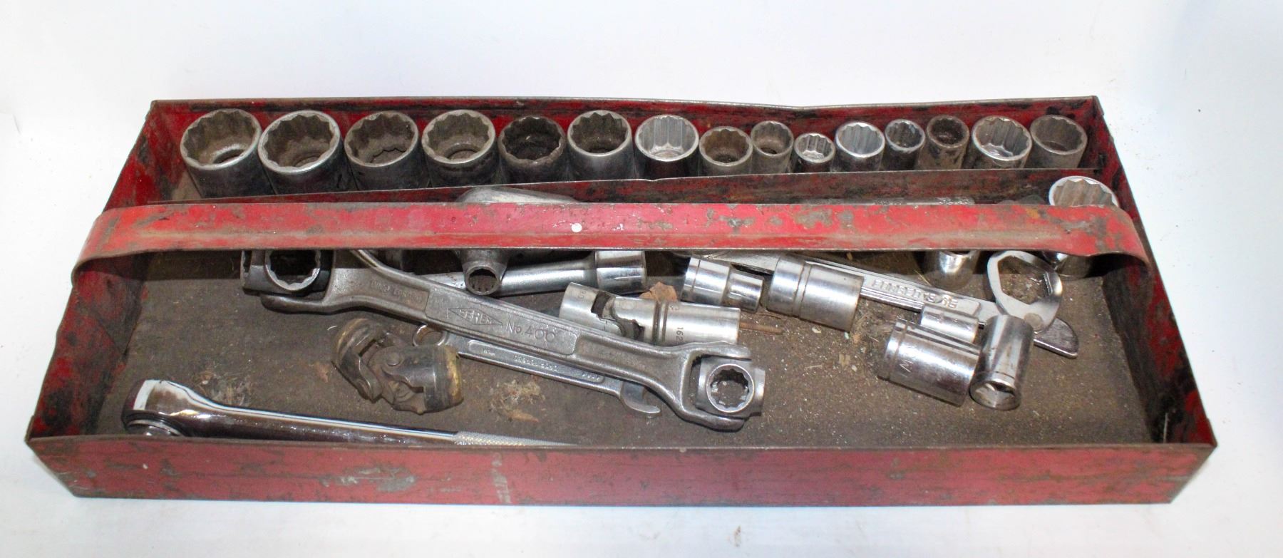 LOT SOCKET WRENCH WITH SOCKETS IN METAL CASE